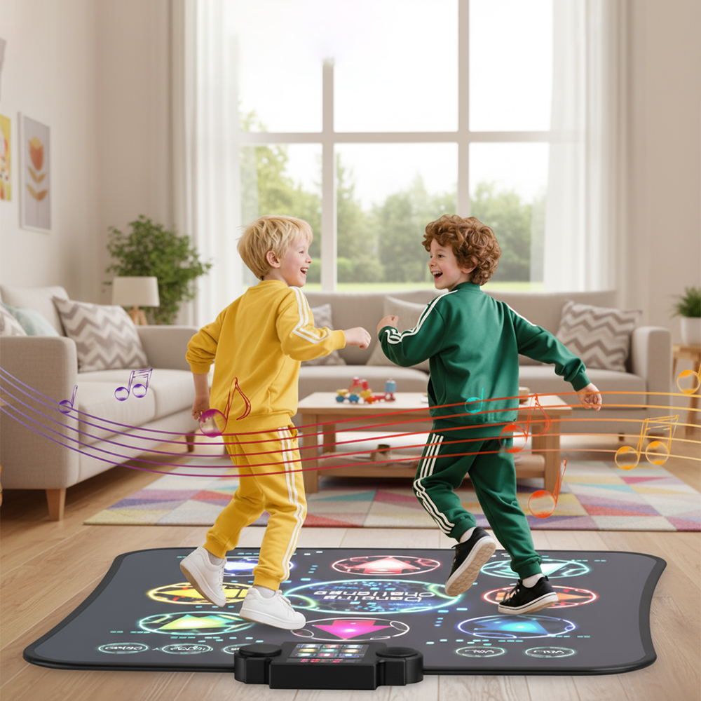 Этот танцевальный коврик оснащен светодиодной подсветкой, синхронизированной с музыкой и играми, что обеспечивает захватывающий и увлекательный опыт. Этот танцевальный коврик — лучший способ начать вечеринку. Это не просто игрушка, но и обновление образа жизни для маленьких любителей танцев вокруг вас. Этот танцевальный коврик поднимет вам настроение, а на лице вашего ребенка появится яркая улыбка!