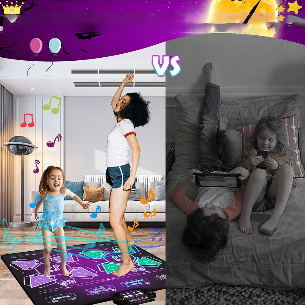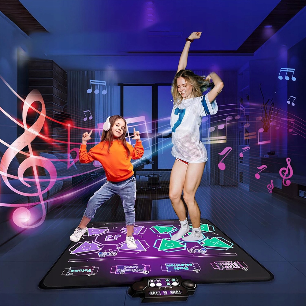 🎁🎁tryb 1-й игрок с 8 уровнями задач --- Dance Mat 1-Plyer Mode предлагает 8 уровней танцевальных задач, и каждый уровень вызова имеет 3 уровня сложности. Следуйте ритму встроенной музыки, танцуйте под ритм мигания на коврике, чтобы танцевать и начать играть в вызовы. Идеальные идеи для подарков на день рождения для 3, 4, 5, 6, 7 и 8-летней девочки, рождественские игрушки.