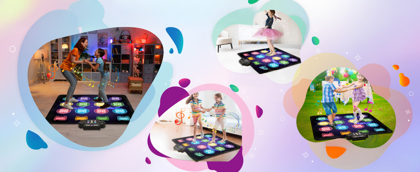 , изготовленный из высококачественного, экологически чистого материала из ПВХ, двойной танцевальный коврик гарантирует на 100% безопасность для чувствительной кожи детей и забавных движений. У него есть два захватывающих способа для индивидуального обучения конкуренции - этот коврик способствует командной работе и здоровой связи между братьями и сестрами/друзьями.