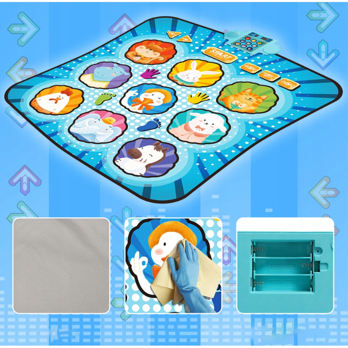 - Детский светящийся танцевальный коврик обеспечивает очаровательный интерактивный опыт, сочетание танца и музыки тренирует координацию глаз и ног детей.