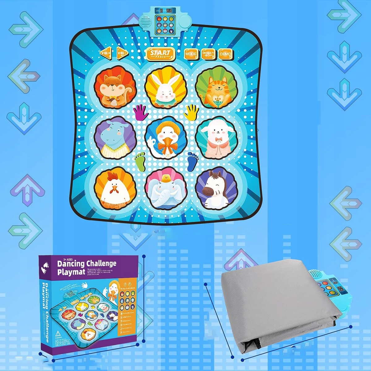 - Коврик для танцев Музыка для детей имеет 8 встроенных музыкальных треков, 4 игровых режима, 8 уровней, 3 уровня сложности, регулируемую громкость.