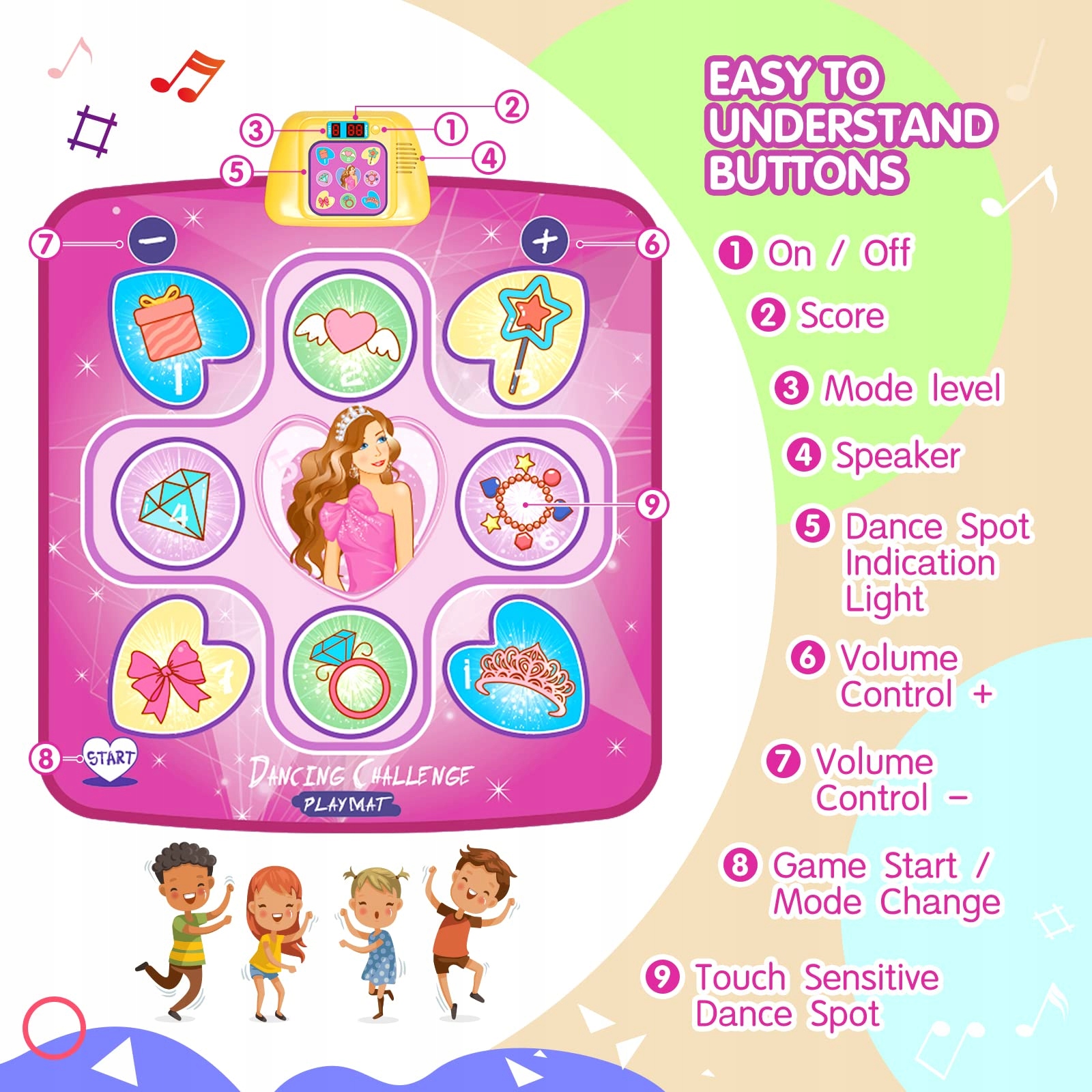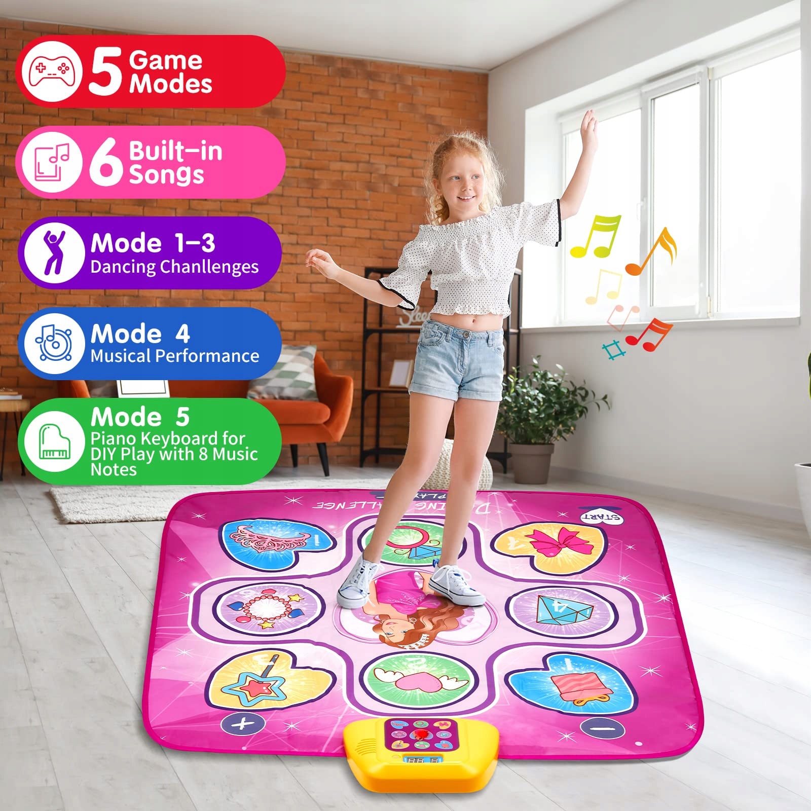 - танцевальный коврик, детский с 5 режимами игры, 3 уровнями испытаний, светодиодной подсветкой, танцевальной игрой, Рождеством, днем рождения, подарком для девочек 3, 4, 5, 6 лет. 7 8 9 лет