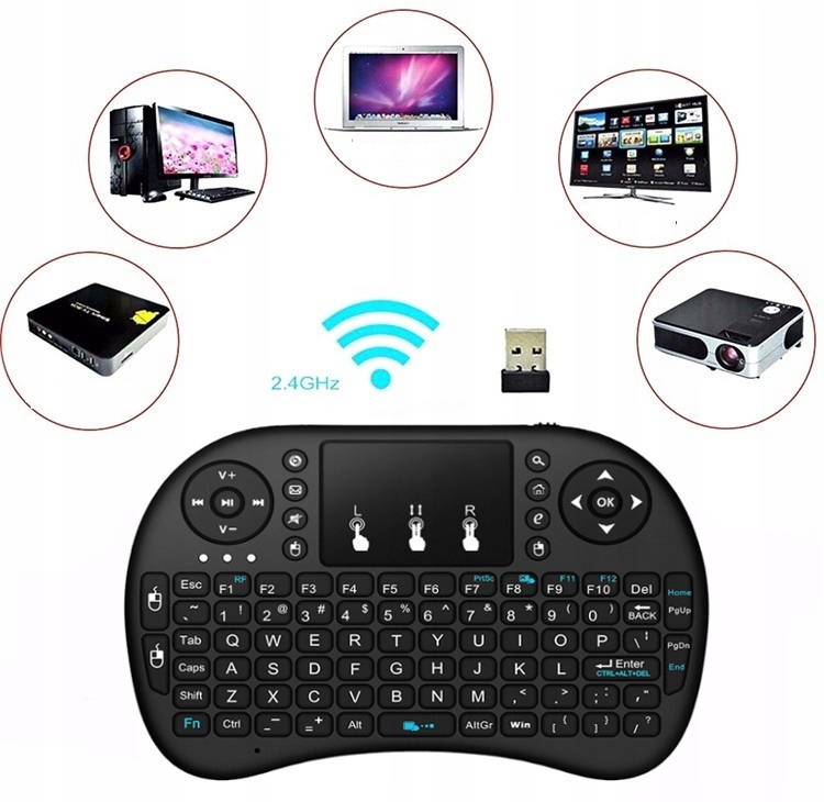 В комплект входит беспроводная клавиатура i8 с сенсорной панелью и функцией прокрутки, которая значительно упростит управление вашим развлекательным центром
