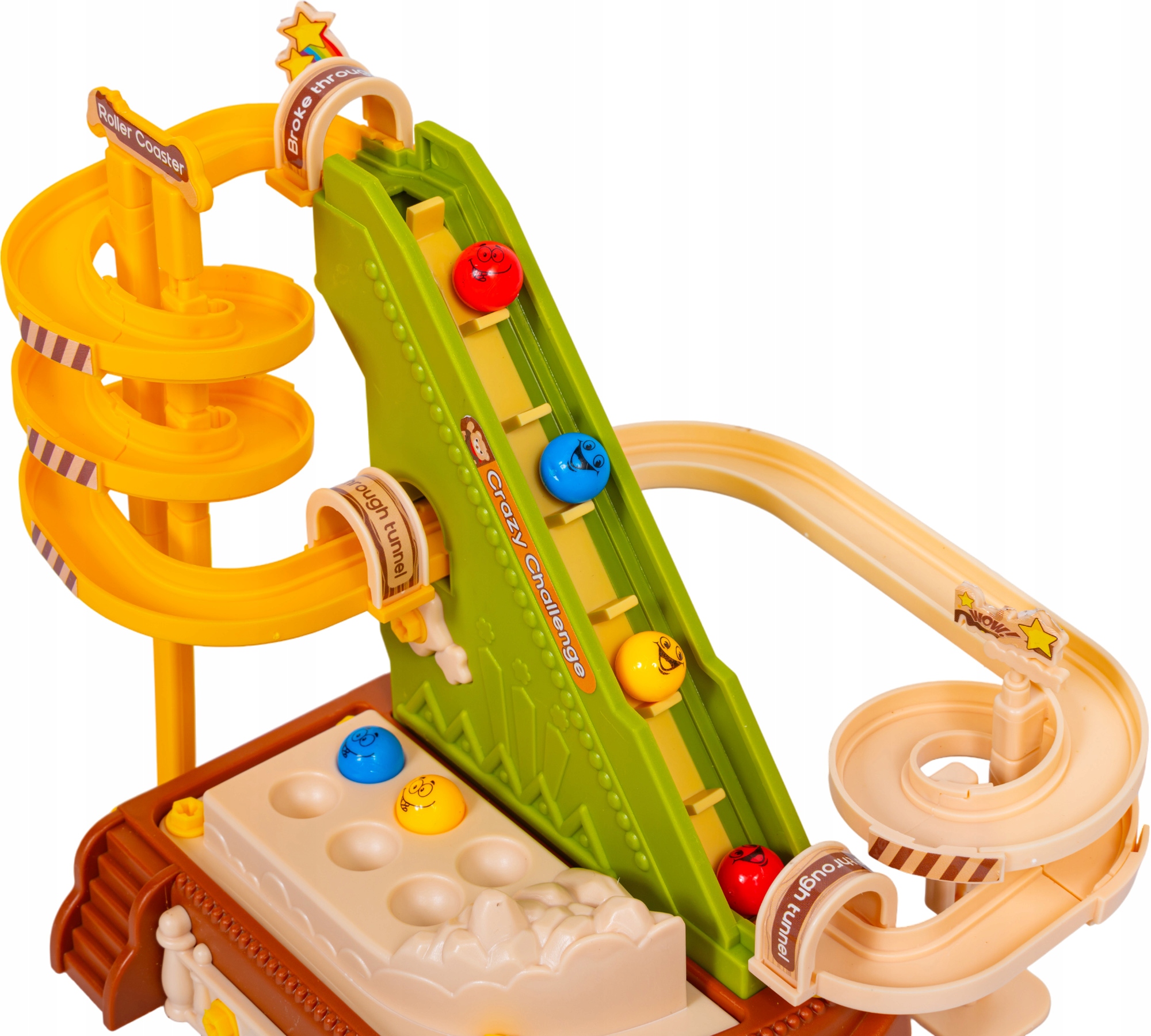 ⭐ Гоночная трасса состоит из двух горок и лестницы — все для того, чтобы милые шарики двигались очень эффективно.