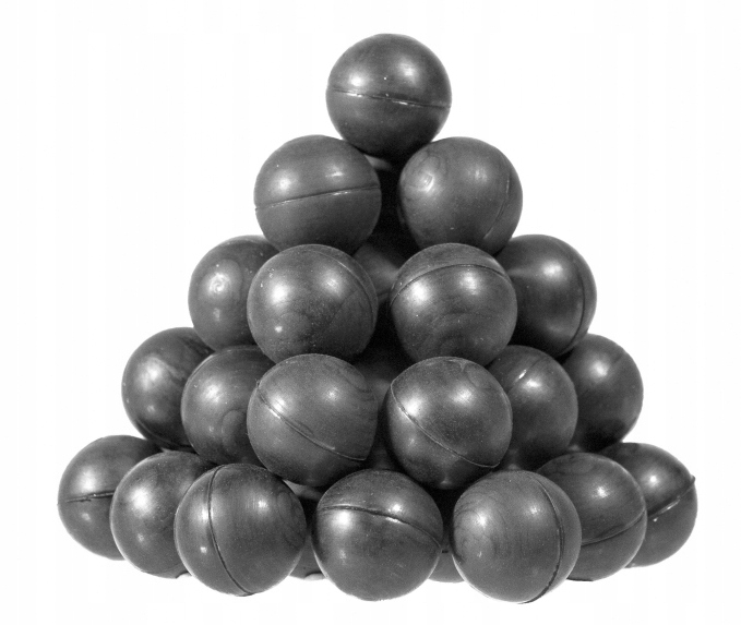 Пули изготовлены изжесткой каучуковой резины высокой плотности, которая прекрасно выделяет энергию после попадания в цель. Идеально сферическая форма, гладкая поверхность и очень хорошая повторяемость производственного процесса обеспечивают высокую точность и исключают заедание при стрельбе.