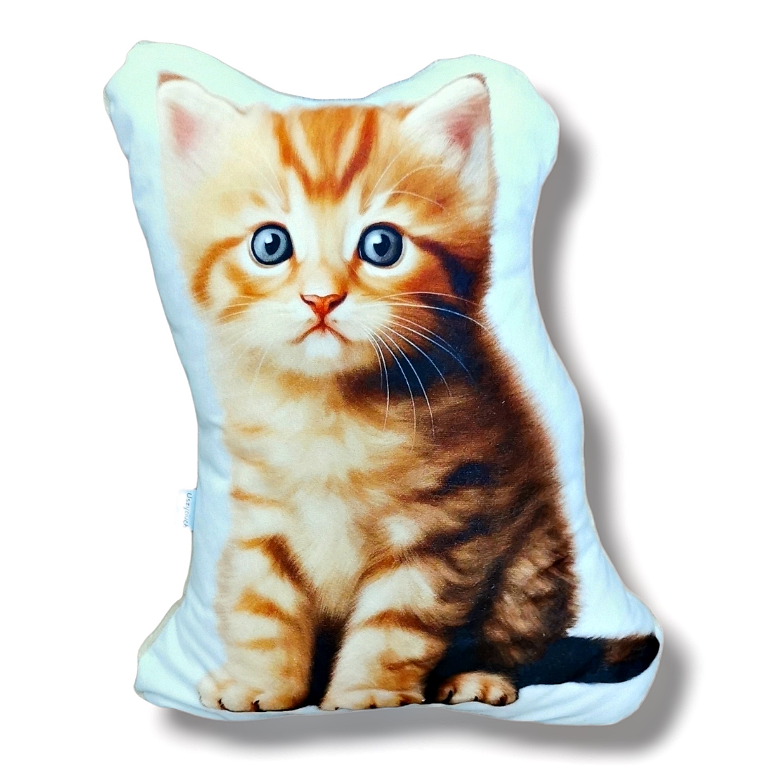Стильная декоративная подушка из микрофибры с кошачьим рисунком и мягкого флиса минки бежевого цвета.