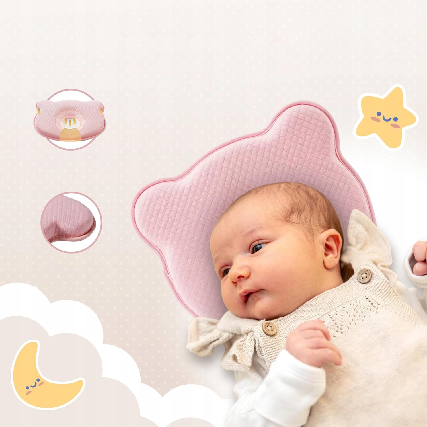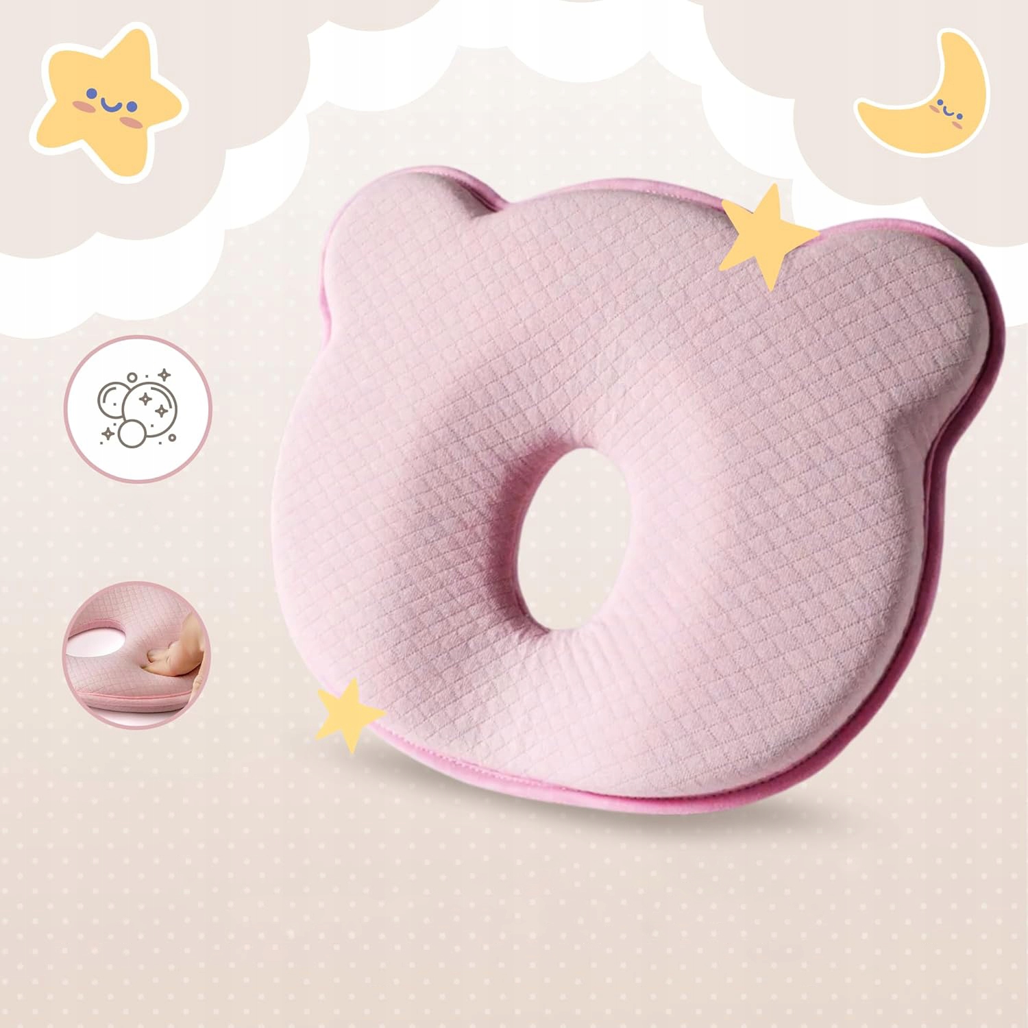 - Детская подушка обеспечивает удобную поддержку шейного отдела позвоночника и головы вашего ребенка во время сна. Посередине имеется паз, который поддерживает головку ребенка и не дает ей сплющиваться.