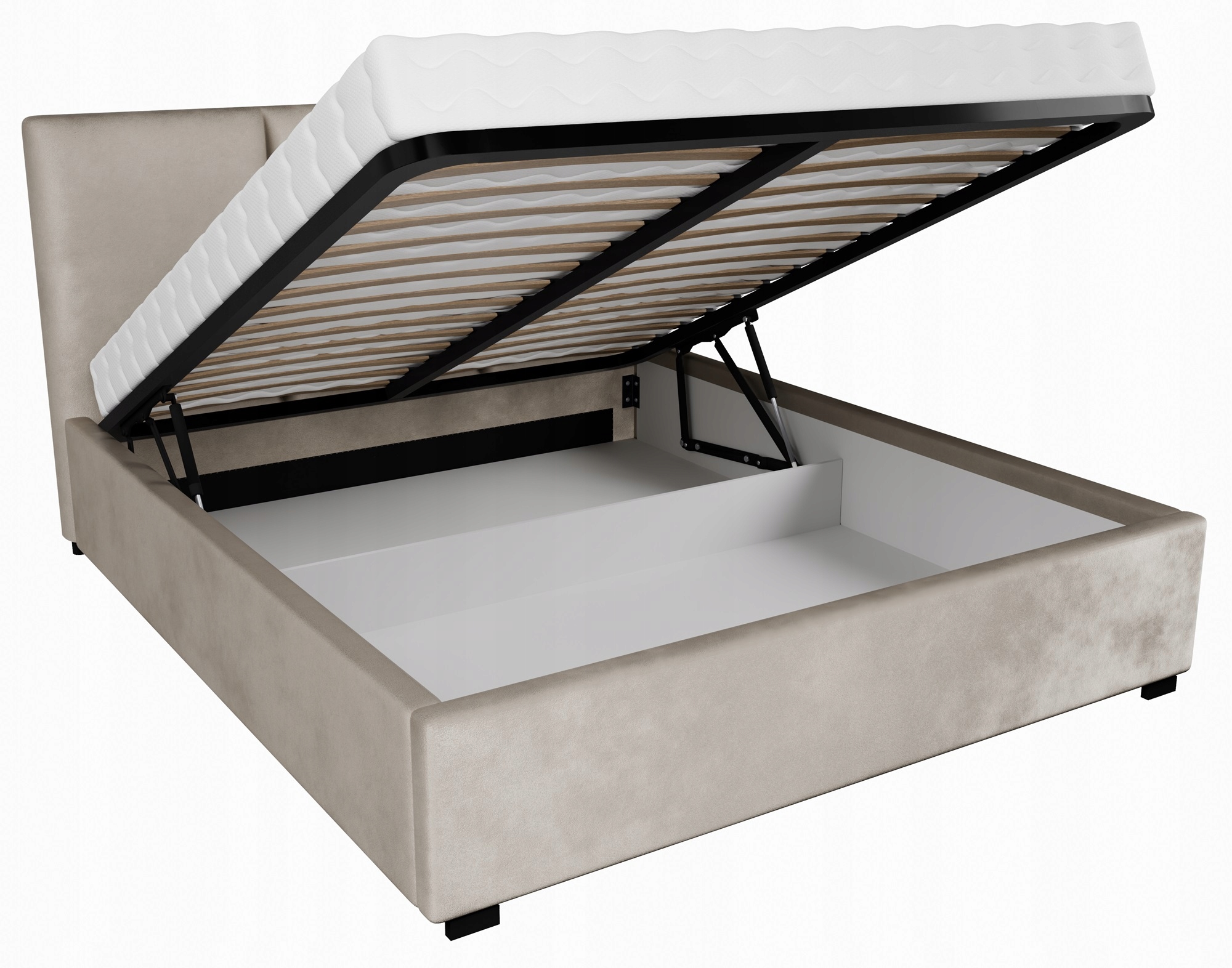 Кровать имеет просторный контейнер для постельных принадлежностей законченный с жестким полом, который позволит хранить не только постельное белье, но и другие предметы. Он открывается в передней части кровати, что упрощает управление пространством в контейнере. легкий и функциональный.