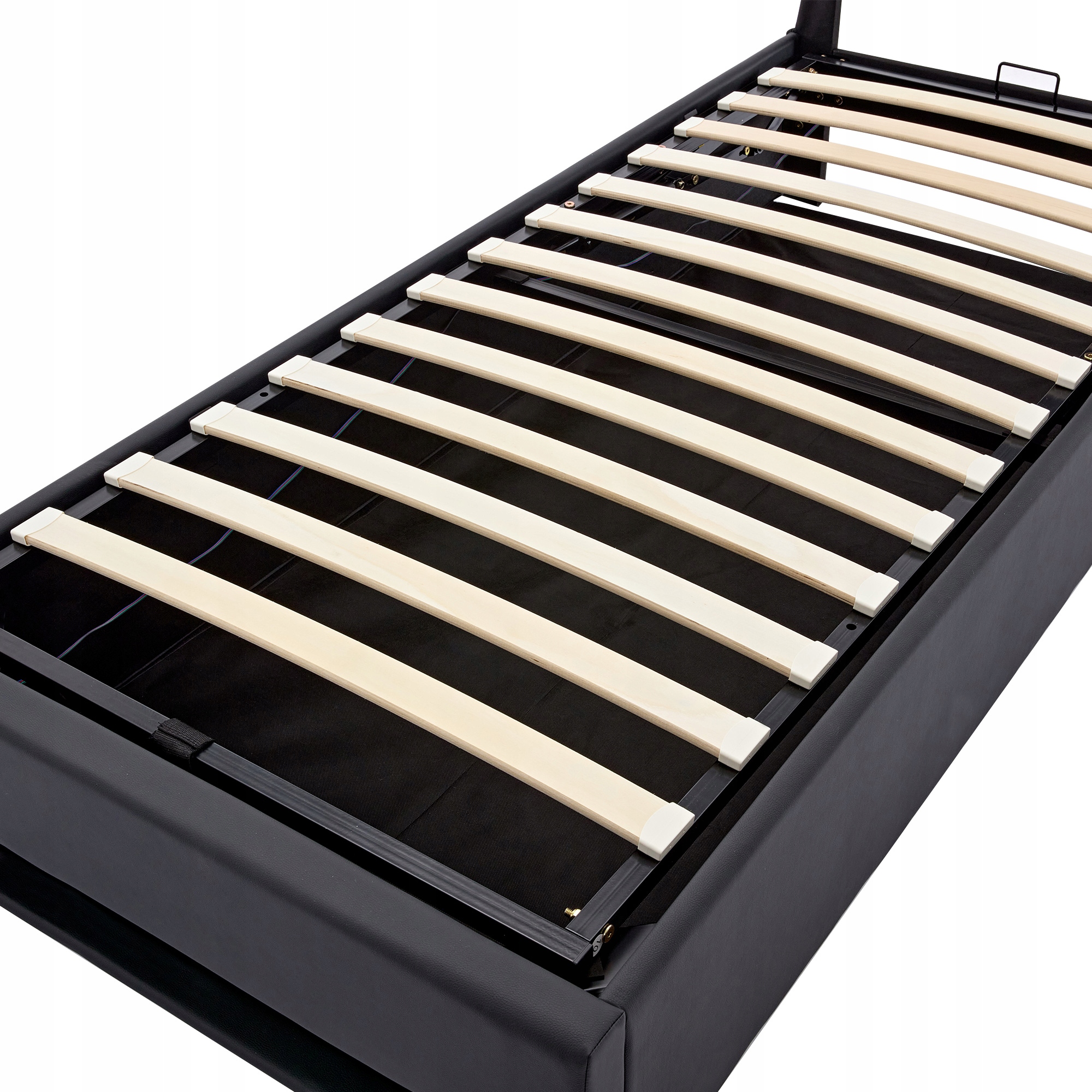Обитая кровать 90 х 200 см с USB -светодиодным хранилищем порта Pu, Black