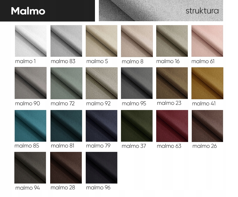 • МАЛЬМО (тонкое плетение) – ткань из группы плетений с тонким меланжевым переплетением. Очень приятная на ощупь, гладкая, тонкого плетения с тонким переплетением. Ткань Malmo также устойчива к скатываниям и обесцвечиванию под воздействием искусственного света. Устойчивость к истиранию: 30 000 циклов.