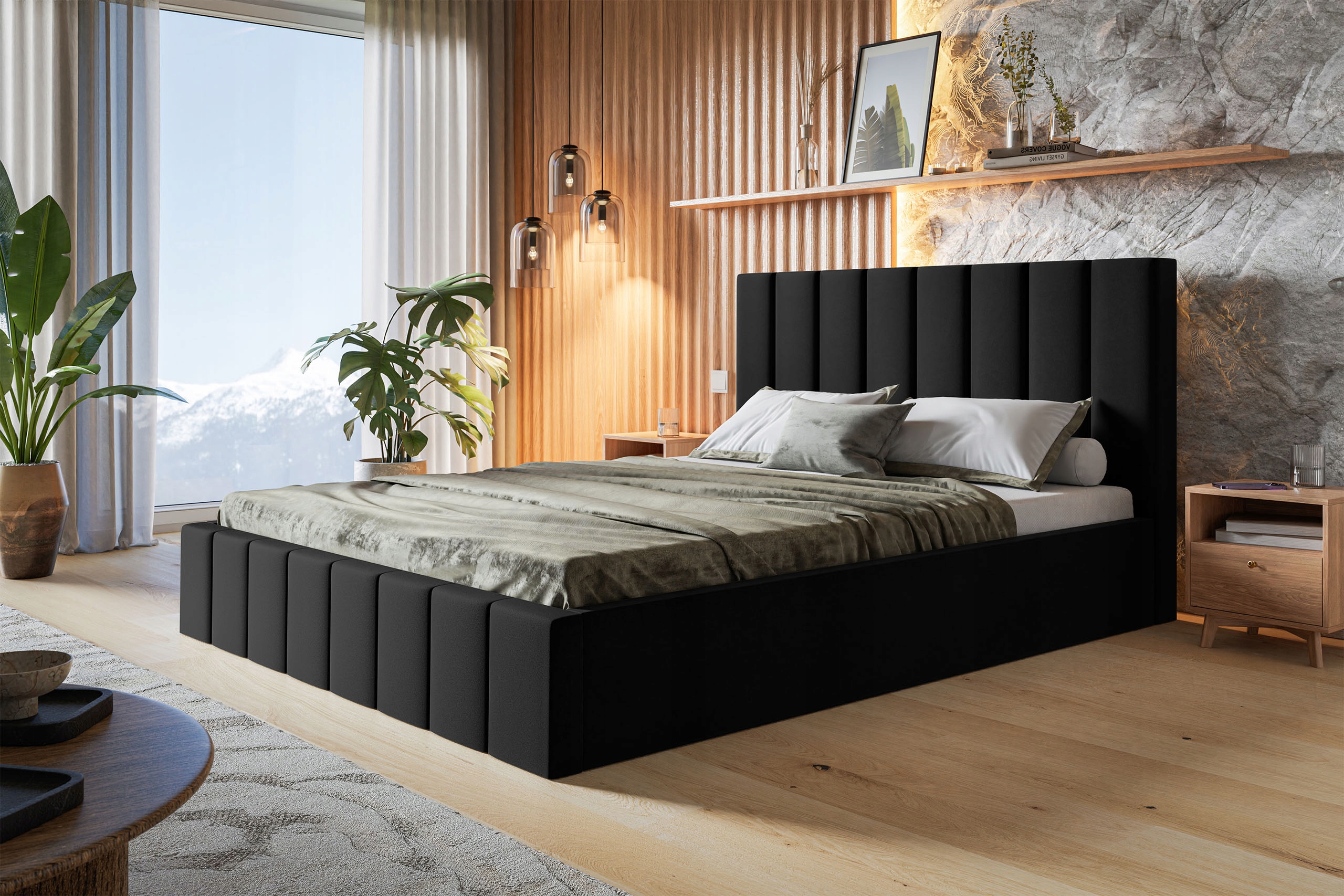 Кровать с мягкой обивкой BALOS SLIM - 160х200 см + контейнер для постельного белья + деревянный каркас