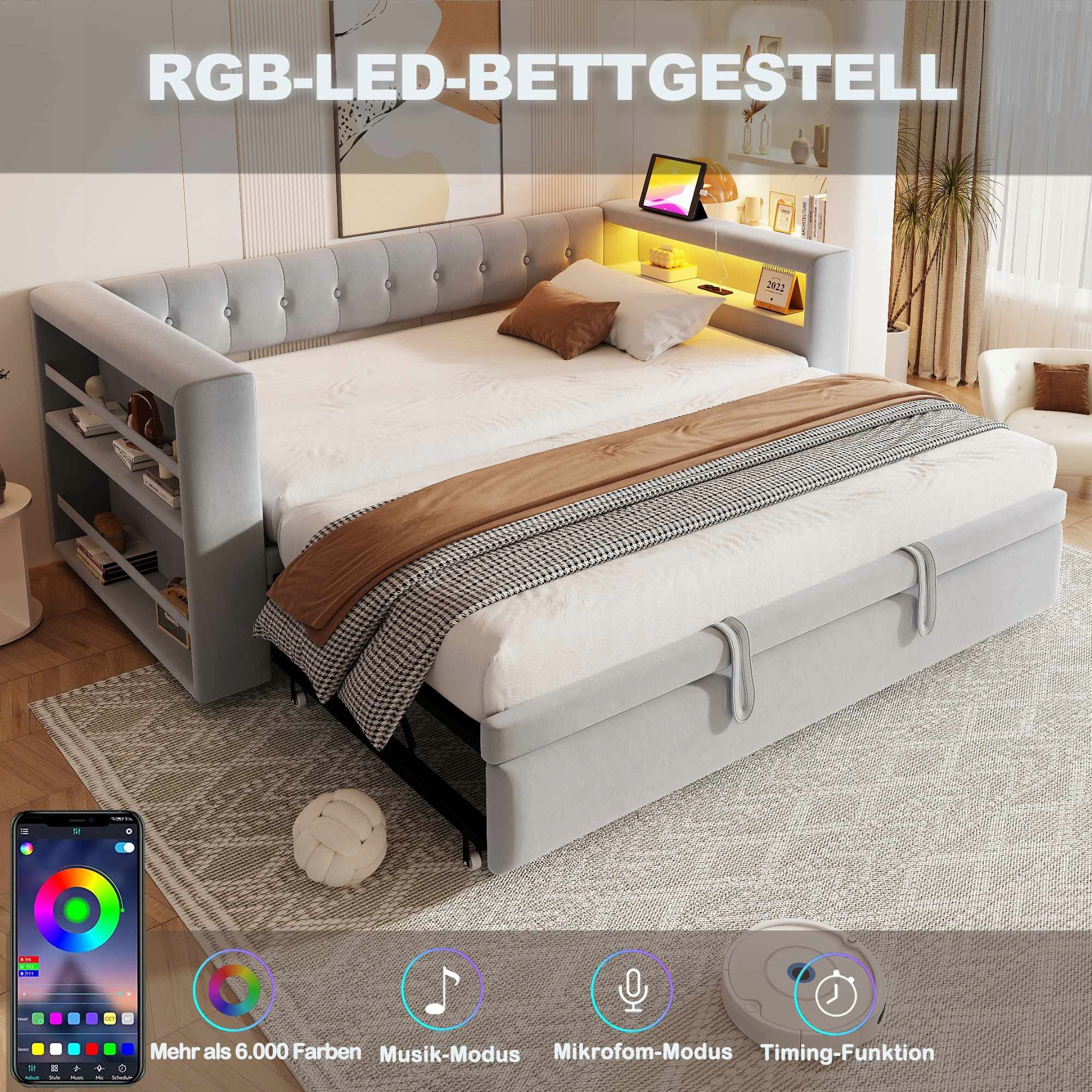 Кровать с мягкой обивкой Диван-кровать 90/180x190см со светодиодной розеткой USB серый