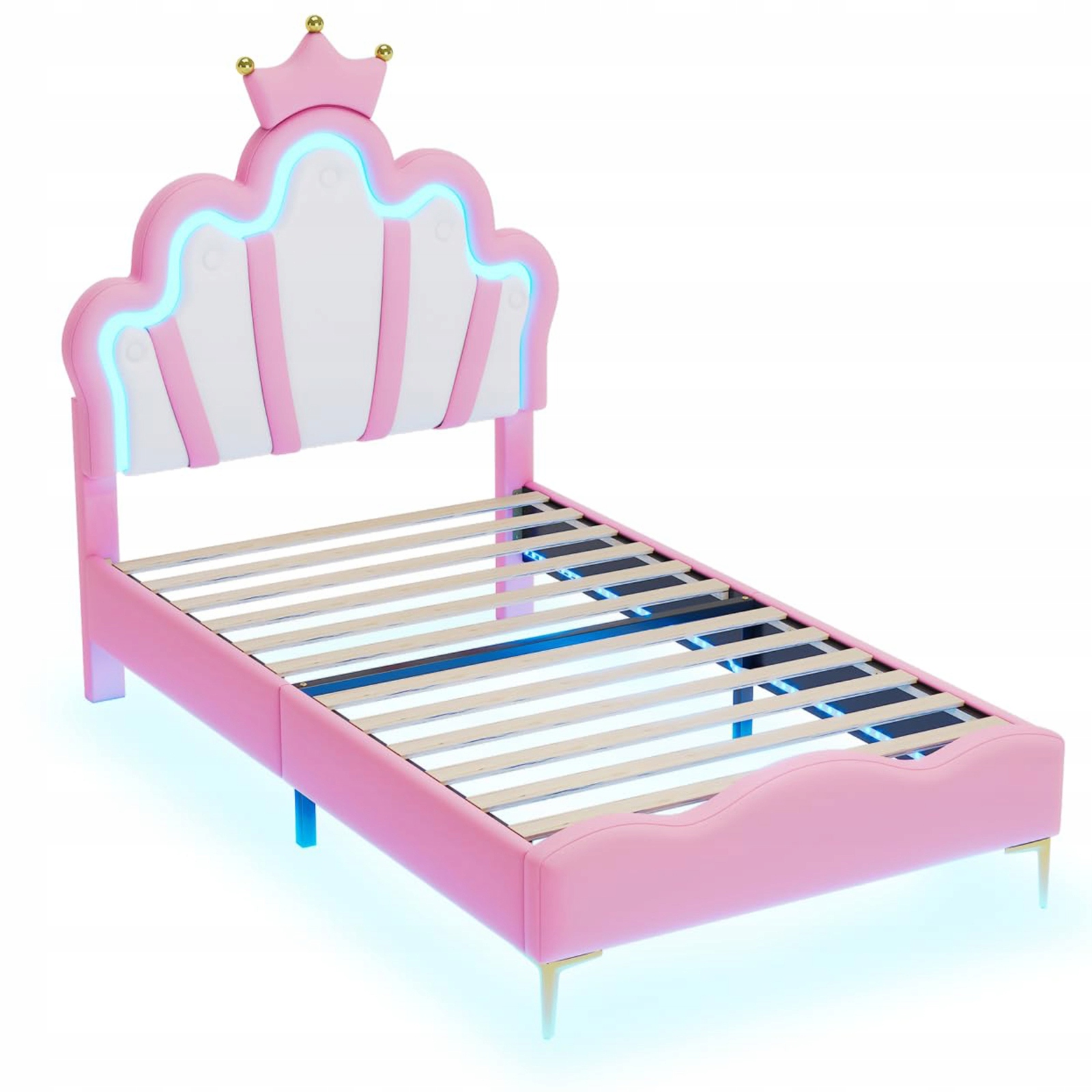 КРОВАТЬ ДЛЯ ДЕВОЧКИ С ОБИВКОЙ 90X200 PU ROYAL CROWN PRINCESS LED