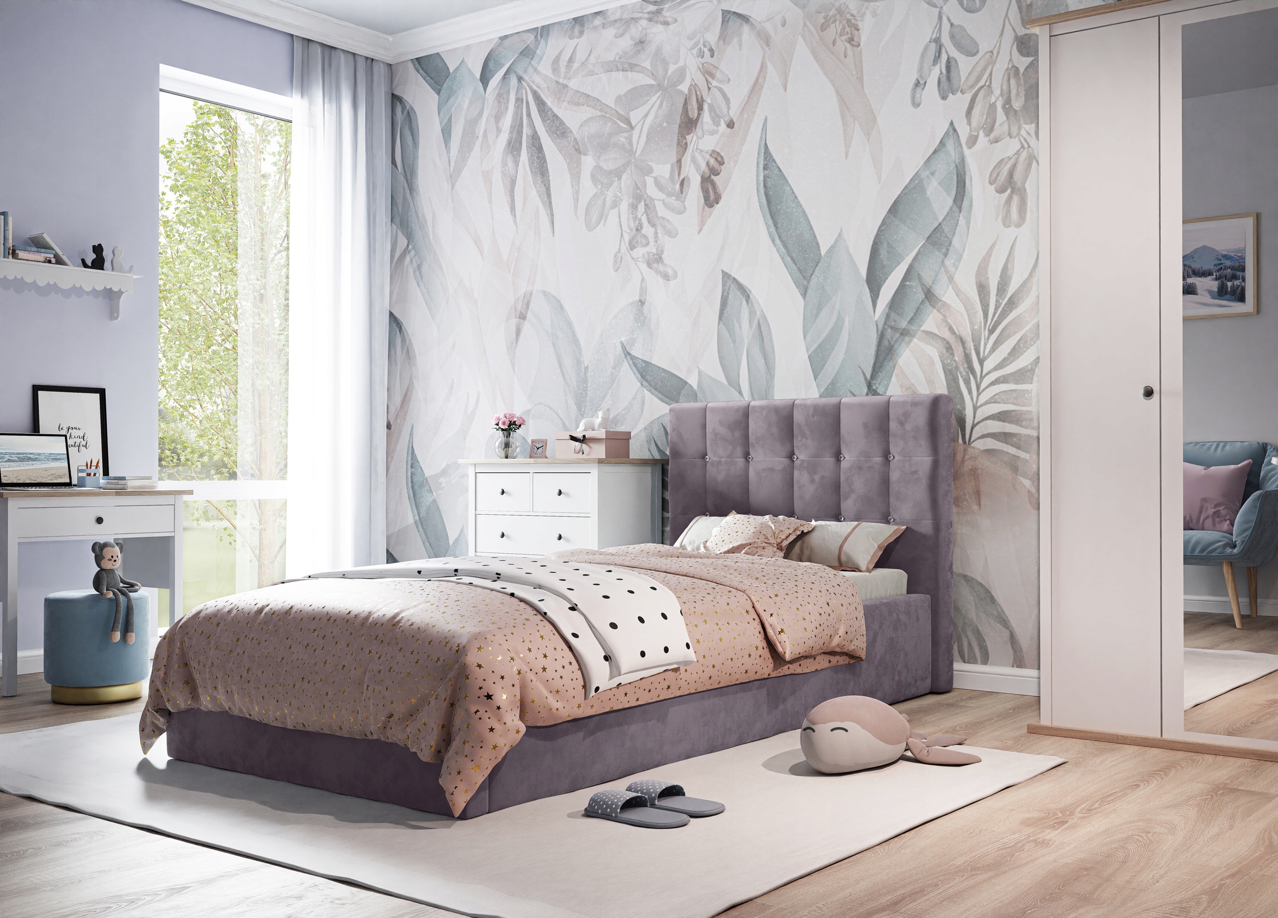 Детская комната – это место, где наши дети проводят больше всего времени, поэтому она должна быть красочной, эстетичной. и, главное, безопасно. Также важно, чтобы ребенок чувствовал себя в ней хорошо, а благодаря нашей кровати LILI II мы обеспечим ему наибольший комфорт во время сна и во время послеобеденного отдыха. Благодаря возможностивыбора типа и цвета обивки обивки кровать впишется в любую композицию.