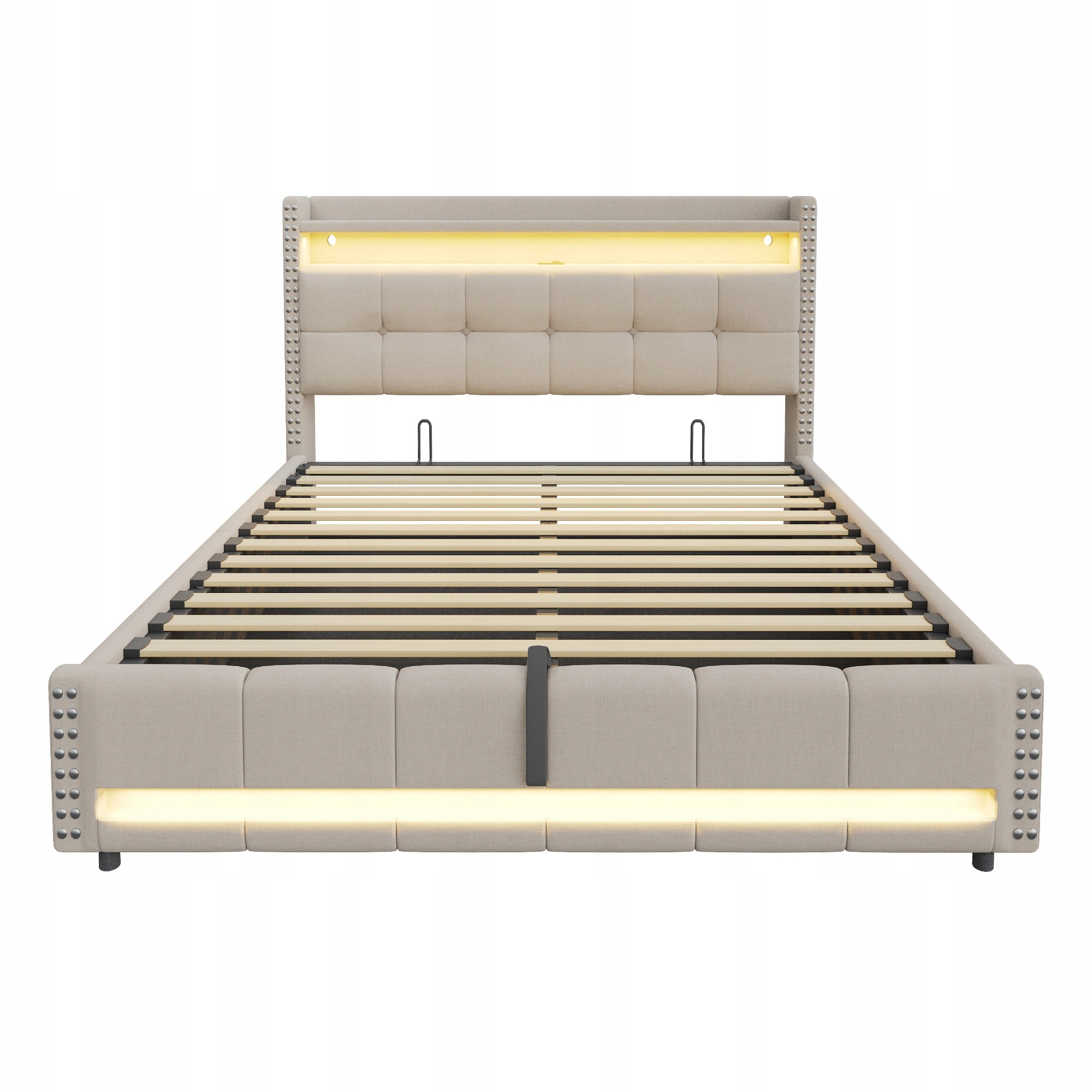 Обитая кровать с двумя светодиодными кроватью 180x200 USB гидравлические полки бежевые полки