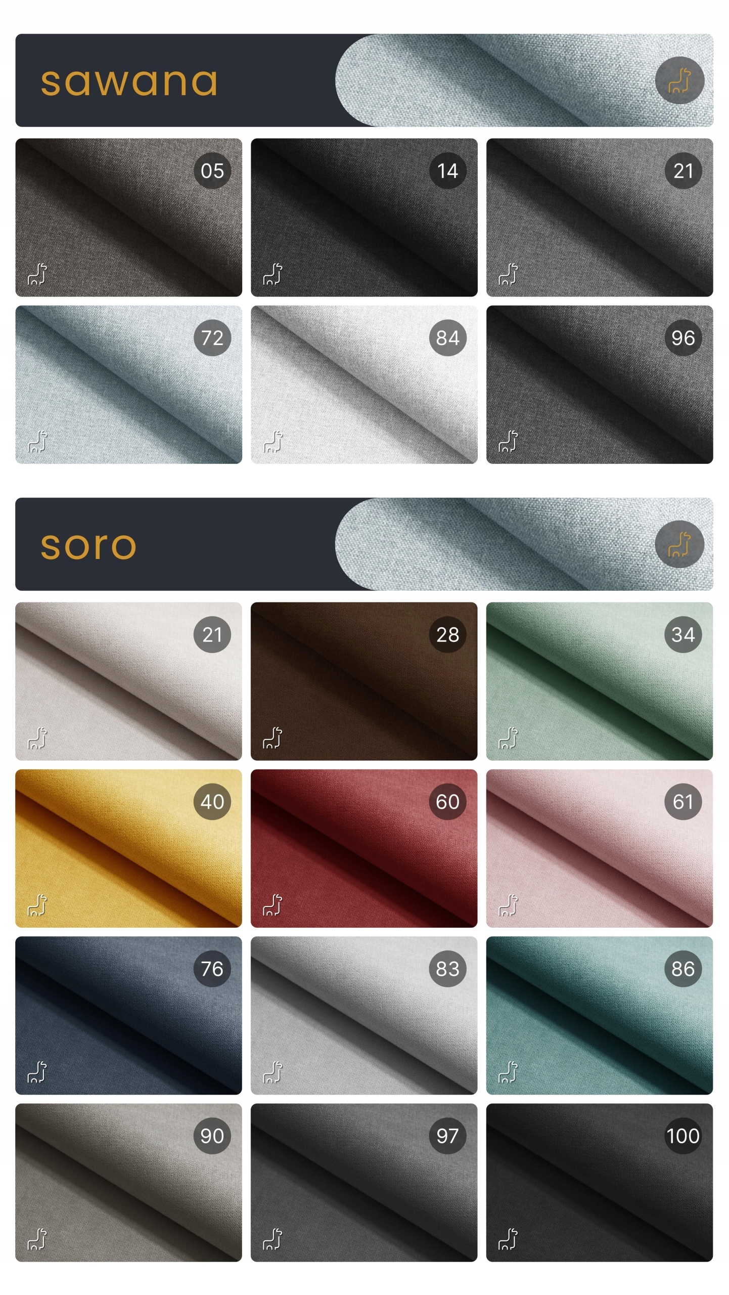 Ткань Соро – это бархатная ткань. Эта ткань мягкая на ощупь и струящаяся, но не эластичная. Он также достиг высокого результата в тесте Мартиндейла — целых 100 000 циклов. Это означает, что он устойчив к трению и не образует дыр после нескольких лет использования. Ткани с таким результатом относят к материалам коммунального назначения, например, к автобусам. Он способен выдерживать высокую частоту использования.