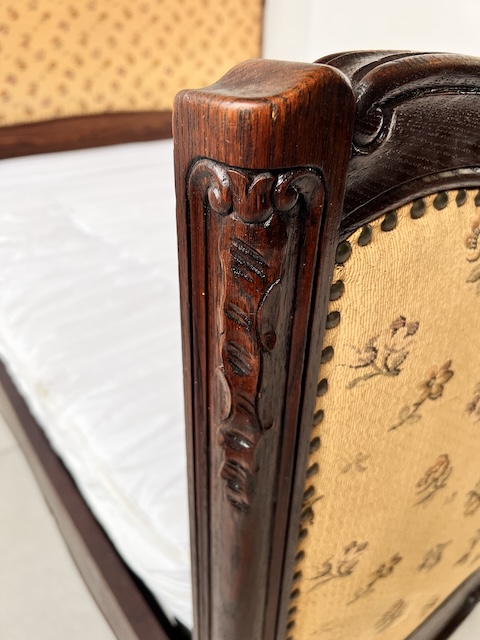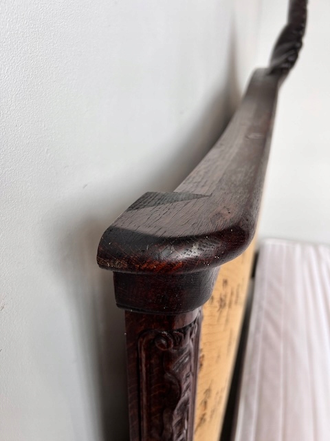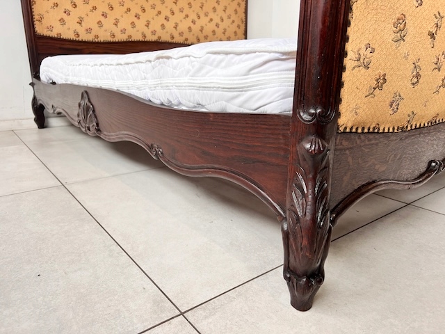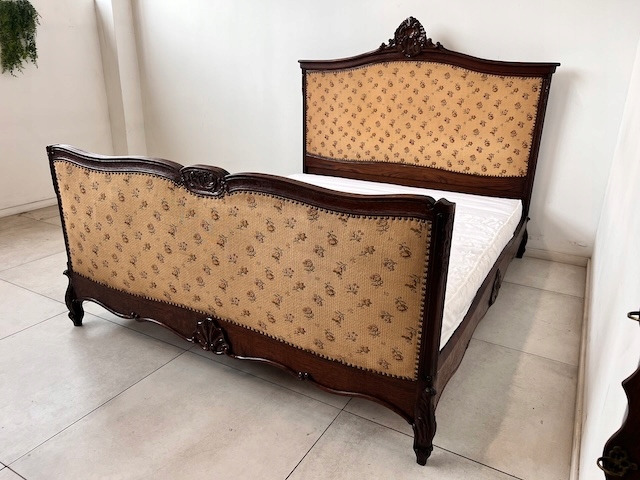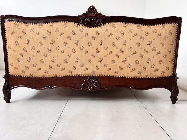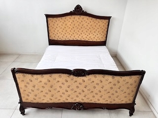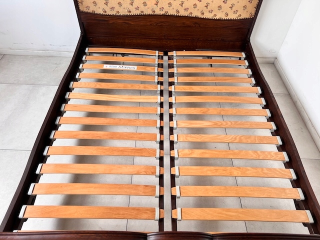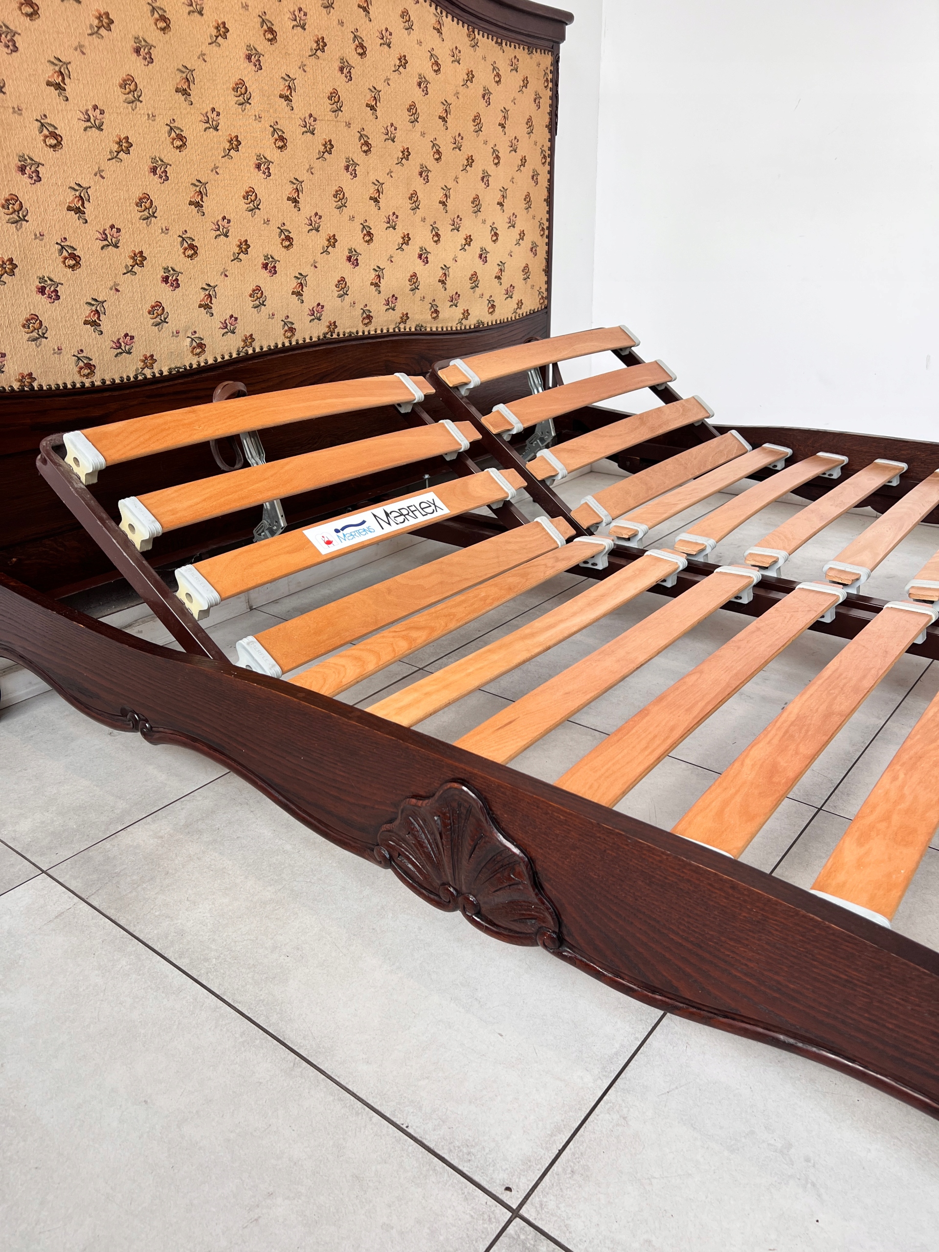 Кровать в мягкой обивке с каркасом и матрасом. Впечатляющий. Рамка изготовлена из дуба в стиле рокайль. Богато украшен. Очень редкая ширина рамы. Обивка в бежевых и коричневых тонах. Он находится в хорошем состоянии. Никаких повреждений нет. Имеет характерные следы использования. На изголовье кровати (верхняя часть) имеются небольшие изменения цвета. Кровать имеет очень прочный каркас. Также есть новый матрас среднего класса. Матрас брать не обязательно, кровать с каркасом стоит 2500 злотых. Кровать готова к установке.