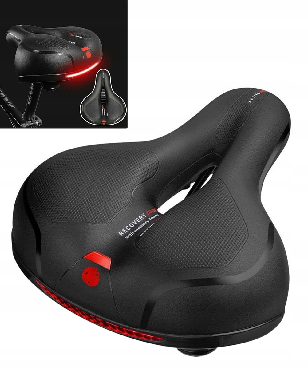 Идеально подходит для людей, испытывающих дискомфорт на стандартных седлах во время длительных велопоездок. Оснащен специальным анатомическим отверстием, улучшающим вентиляцию, и двойной амортизацией из пены и пружин, гарантирующей комфорт вождения. Подвешивается на 2-х стержнях, что значительно повышает его устойчивость. Дополнительный красный отражатель в задней части седла повышает безопасность велосипедиста и улучшает видимость на дороге.