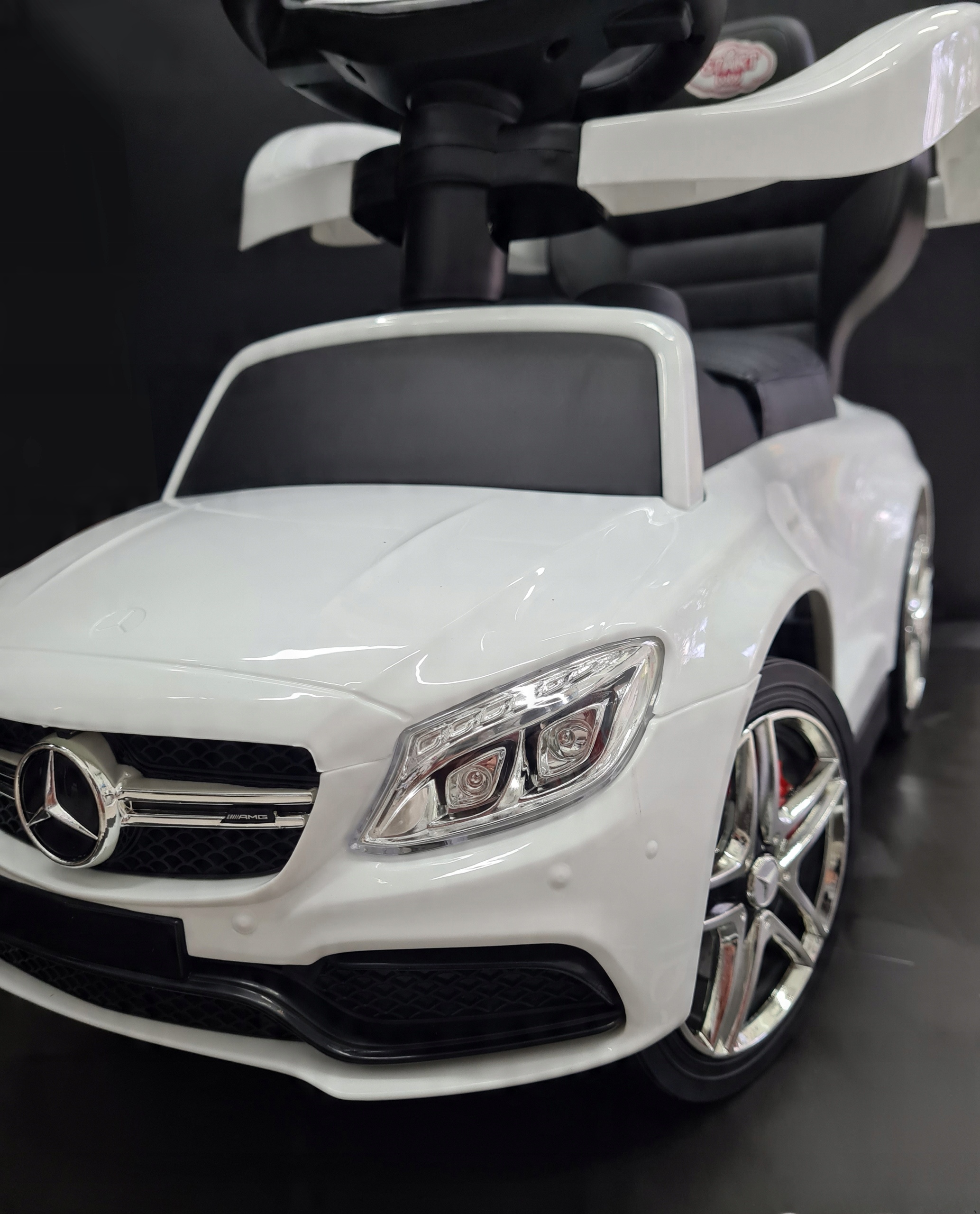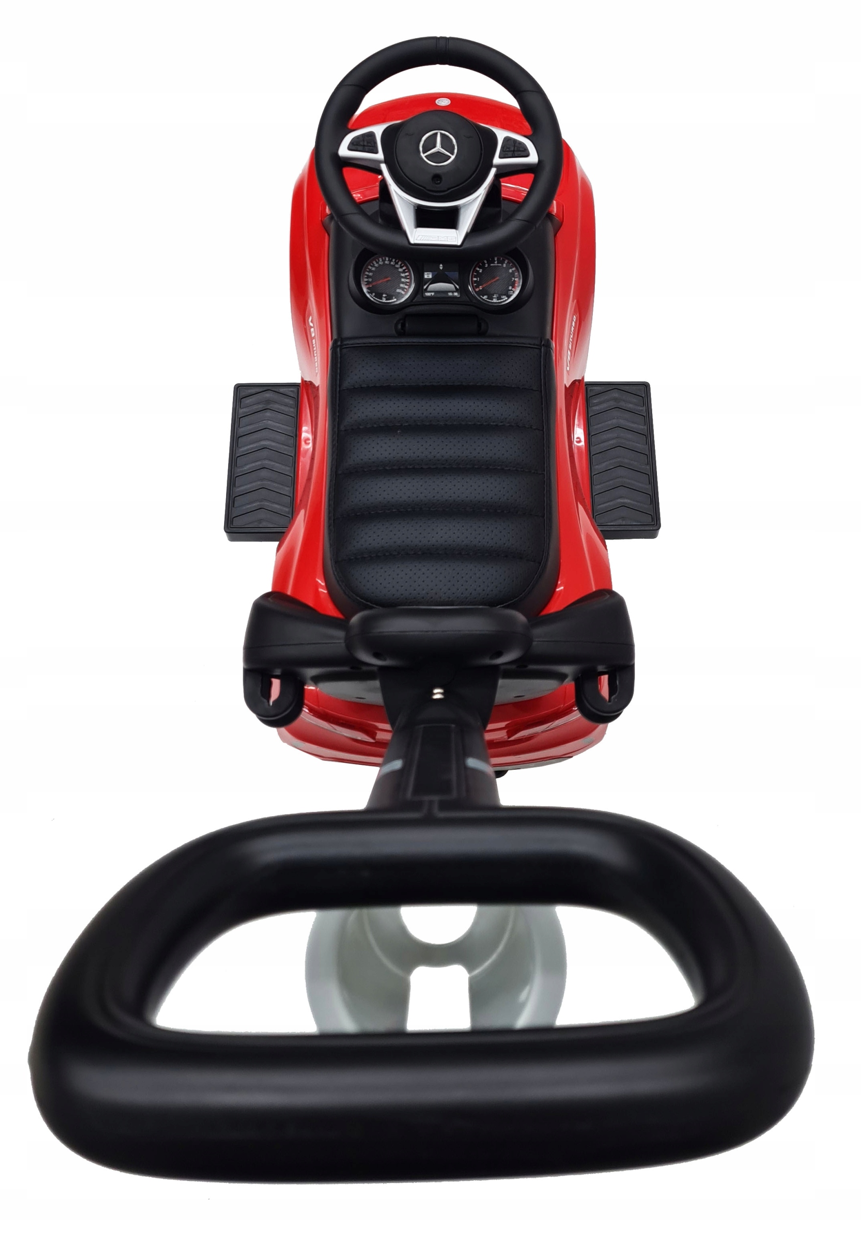 НОВИНКА!!! Колеса, которые не царапают поверхность. Дополнительный слой (покрышка) из специального материала, благоприятного для грунта. Тихо и безопасно. Кроме того, хромированный диск, вентилируемые диски, красные суппорты AMG и, наконец, двигатель V8, приводимый в движение ножками нашего любимого малыша или в нейтральном режиме автопилотом, управляемый дополнительной ручкой, к которой крепится подстаканник на случай, если понадобится быстро заправиться ;)