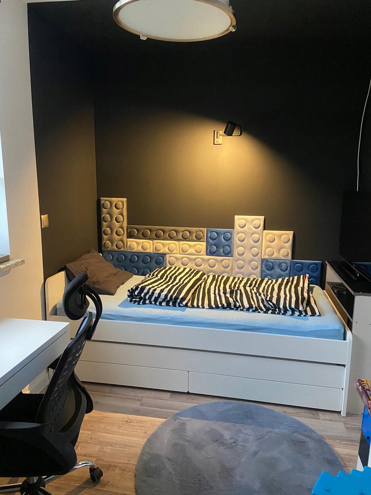 Инновационные стеновые панели в форме кубиков LEGO, которые помимо уникального стиль, который преобразит комнату вашего ребенка, также имеет еще и функцию – акустическую. Они прекрасно глушат звуки, делая помещения тихим.