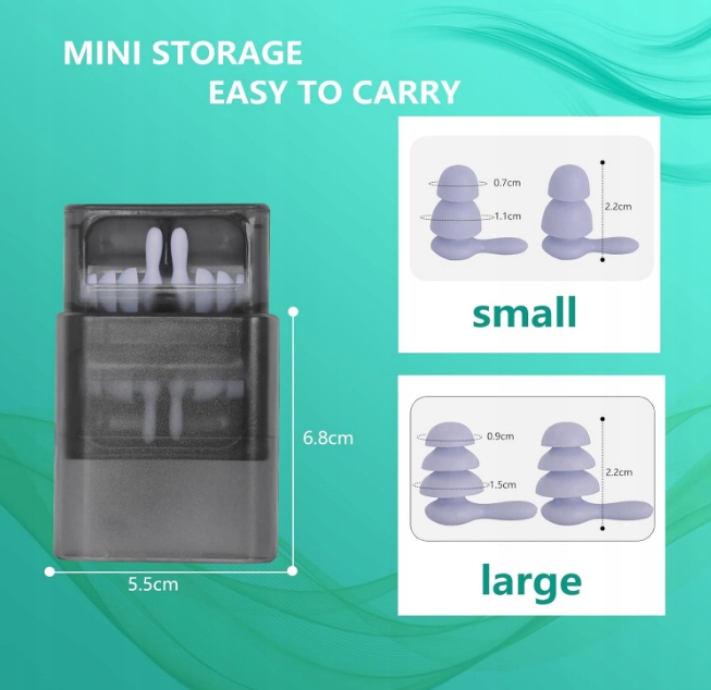 Мягкие силиконовые беруши, адаптируются к форме вашего уха, их легче носить, они не выступают из уха, удобно сопровождают вас во время сна, 2 пары берушей, профессиональная версия и полноразмерная версия для удовлетворения ваших потребностей. Подходит для многих случаев, можно стирать, есть многоразовый ящик для хранения.
