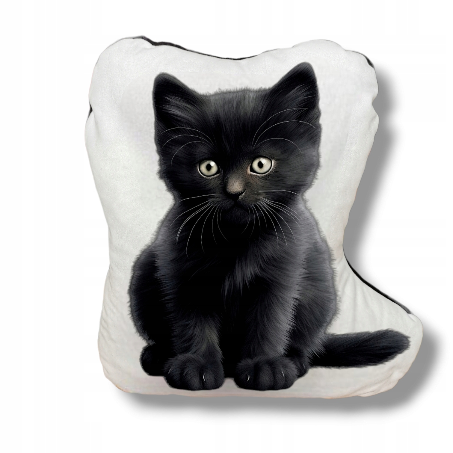 Стильная декоративная подушка из микрофибры с кошачьим рисунком и мягким минки-флисом черного цвета.