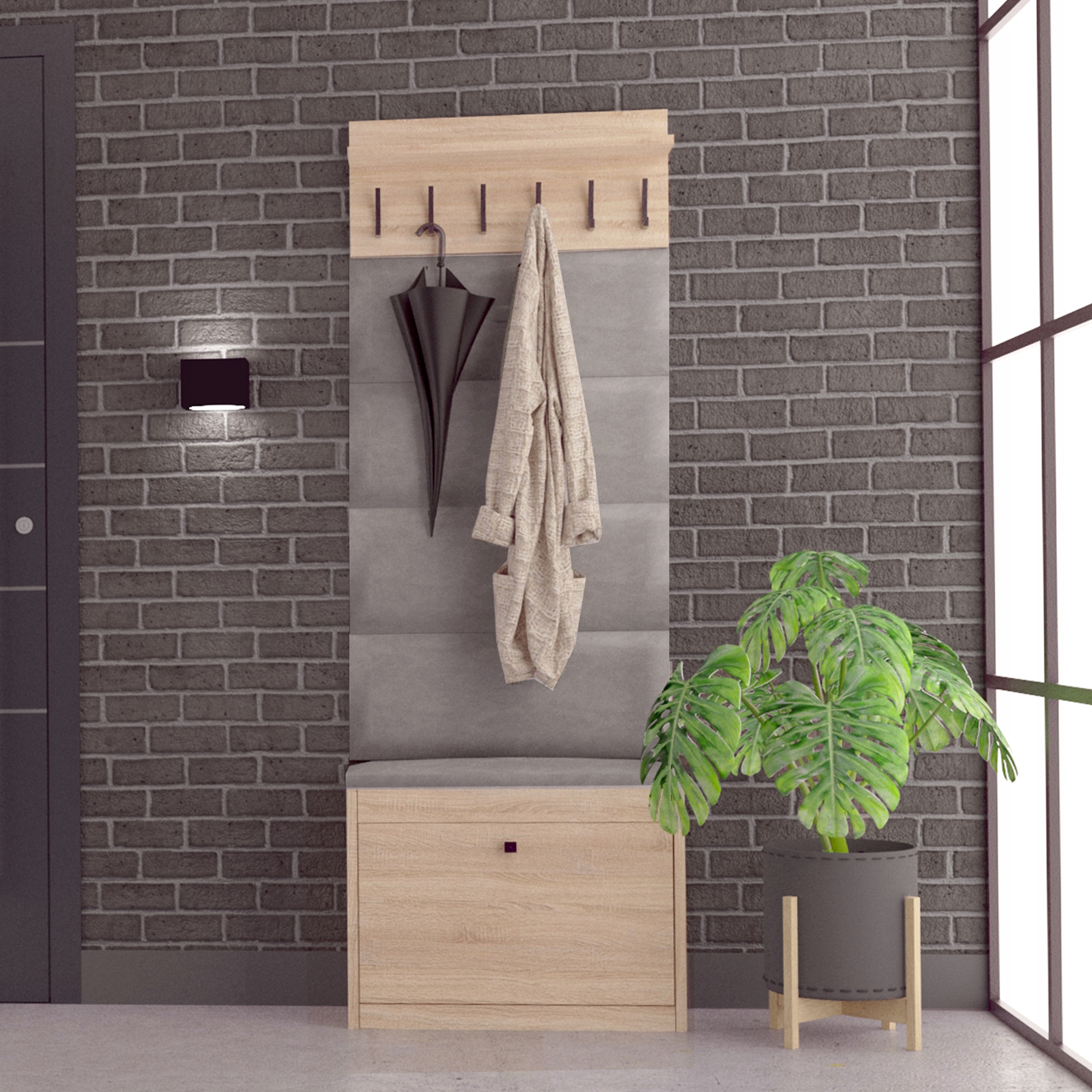 Обитый набор мебели для обуви для прихожей для обуви вешалка Sonoma Oak h1>
