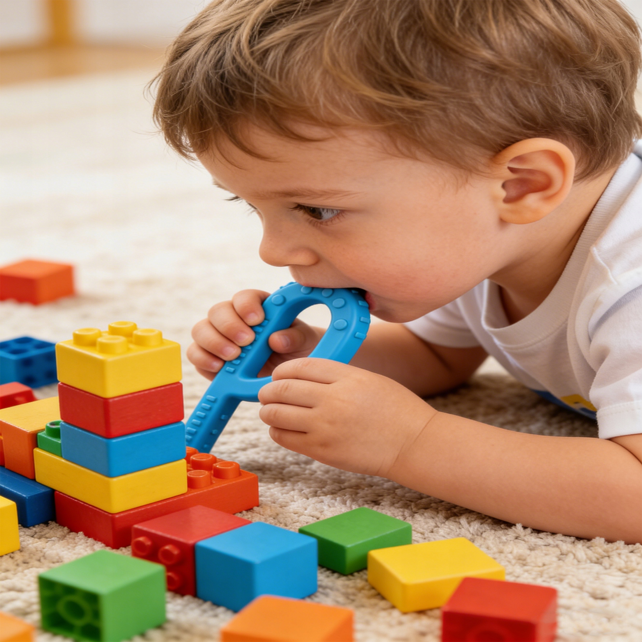 🔹 Несмотря на то, что она прочная и имеет твердость 60 градусов (средней жесткости), ни одна жевательная игрушка не обеспечивает полную устойчивость к повреждениям! Дети с высокими потребностями в ротовой полости или сильным прикусывающим давлением должны находиться под присмотром взрослых. В случае повреждения немедленно замените.