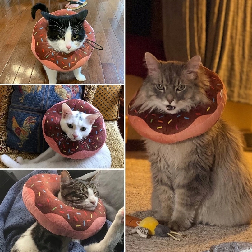 Ошейник имеет симпатичный вид пончика. Вам и вашему питомцу это понравится. Это доставляет удовольствие и придает вашему питомцу сладкий шарм.