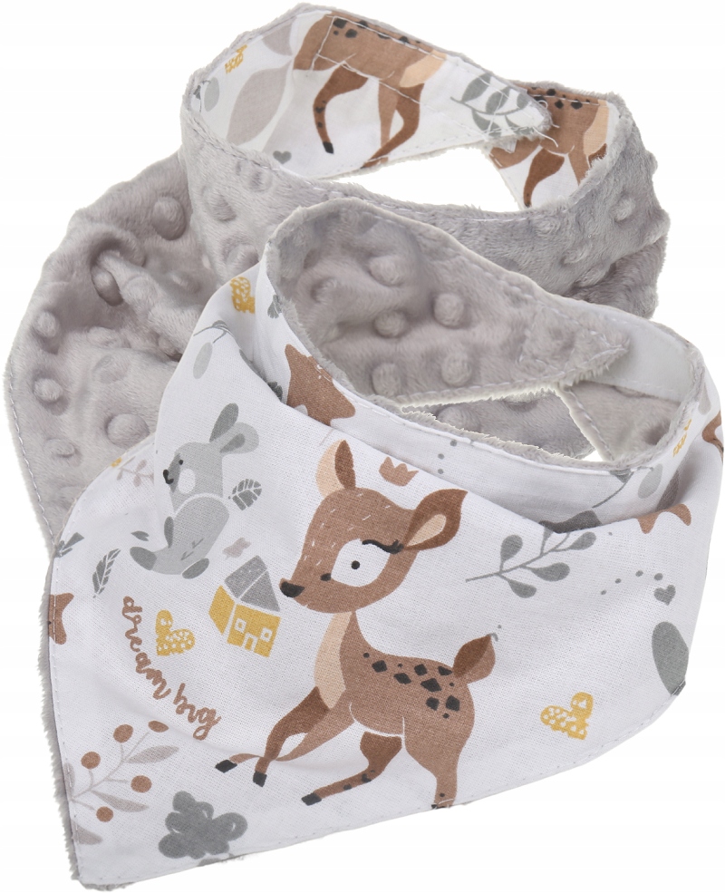 Шарф Babymam двухслойный изготовлен из хлопка и плюшевые минки с пузырьками. Это незаменимая вещь для каждой детской кроватки. Хлопчатобумажная сторона впитывает, поэтому ее можно использовать как нагрудник, а сторона из норки согреет, если во время прогулки ветер окажется слишком неприятным. Наш шарф имеет треугольную форму, свободно облегает шею ребенка и является красивым элементом одежды.