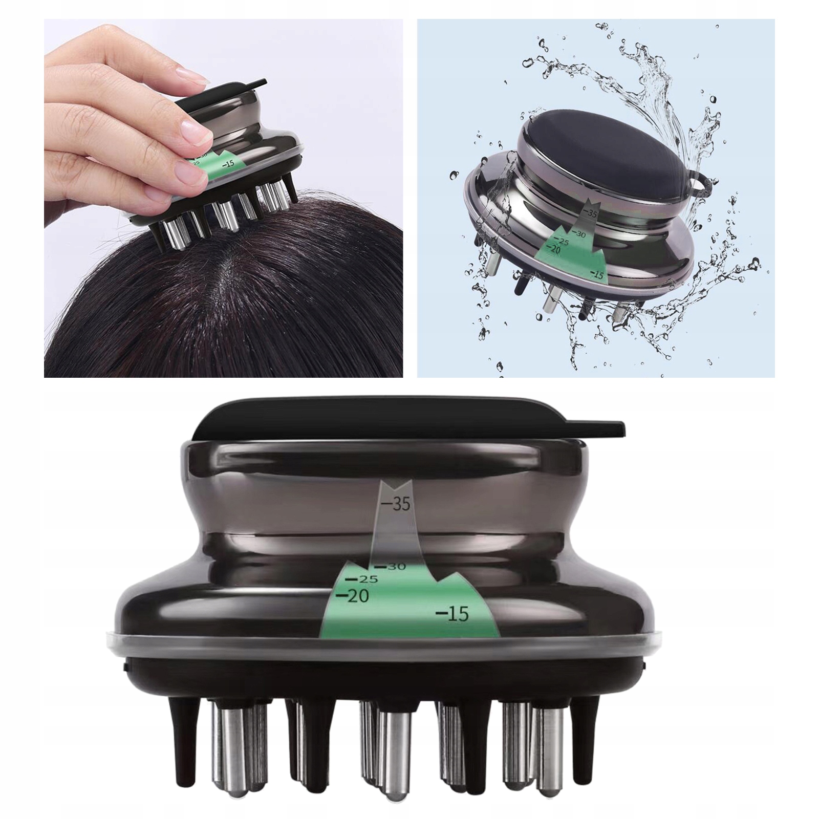 Распределите эфирные масла по коже головы, не оставляя их на волосах и руках, оно распределяется равномерно, 14 шпилек массируют кожу головы и ускоряют впитывание.