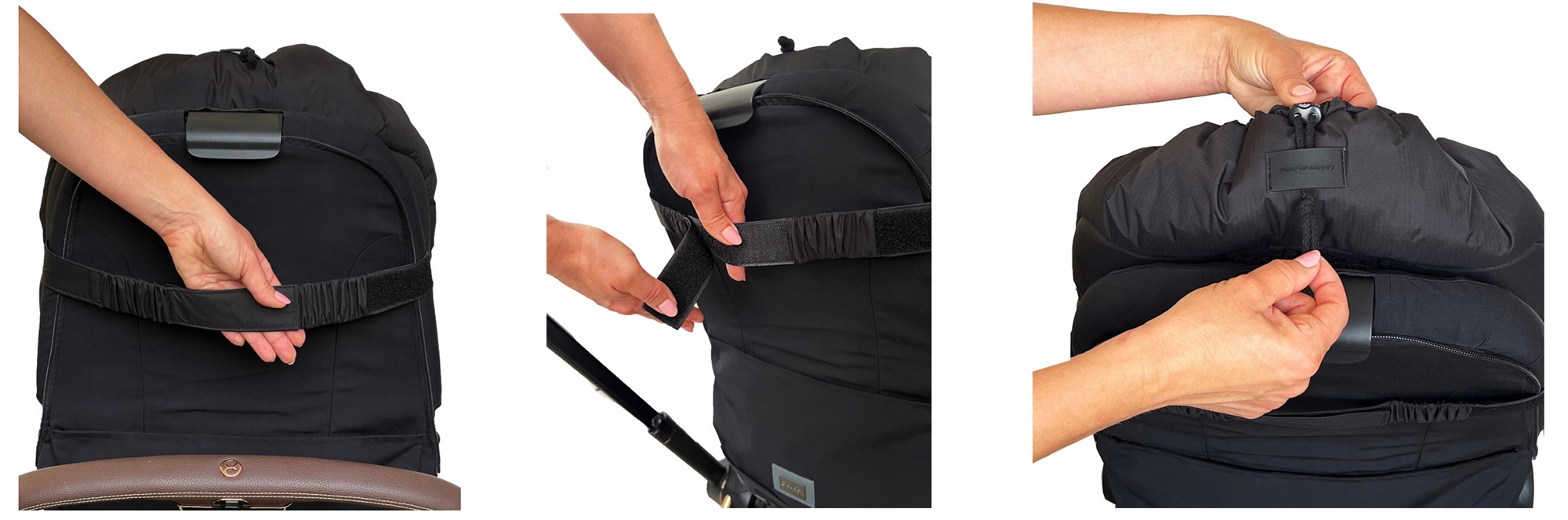 Зимний спальник COMBI PRIME имеет меры безопасности, обеспечивающие устойчивость и неподвижность спального мешка в коляске – противоскользящий коврик, боковые ремни для крепления к раме коляски и резиновый ремень, позволяющий прикрепить его, например, к коляске. к ручке регулировки сиденья.