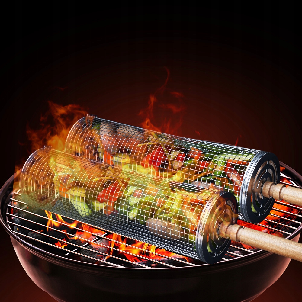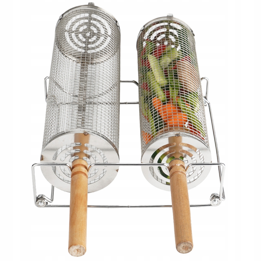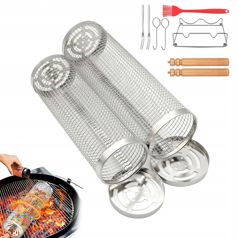 🏡 2 Цилиндрические, свернутые корзины для гриля из 304 из нержавеющей стали для мяса, стейков, рыбы, креветки, овощей · · -