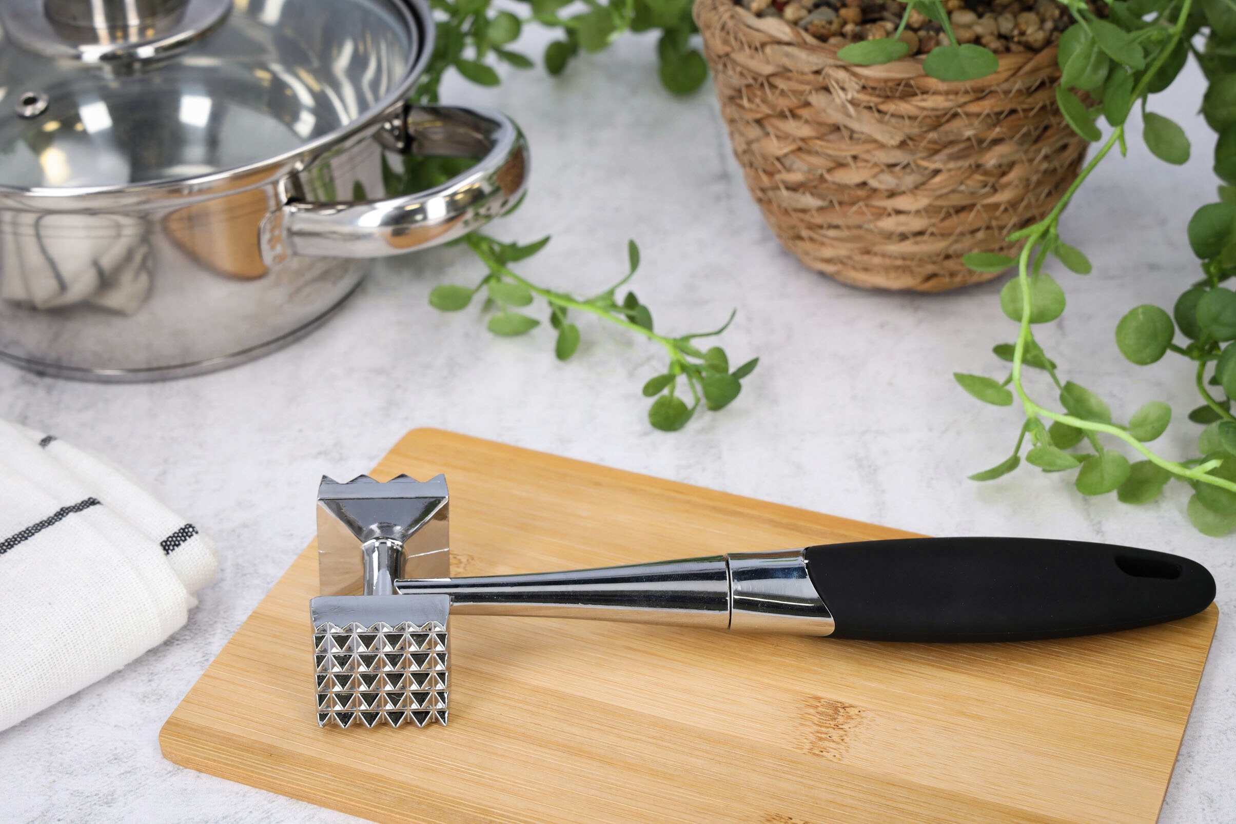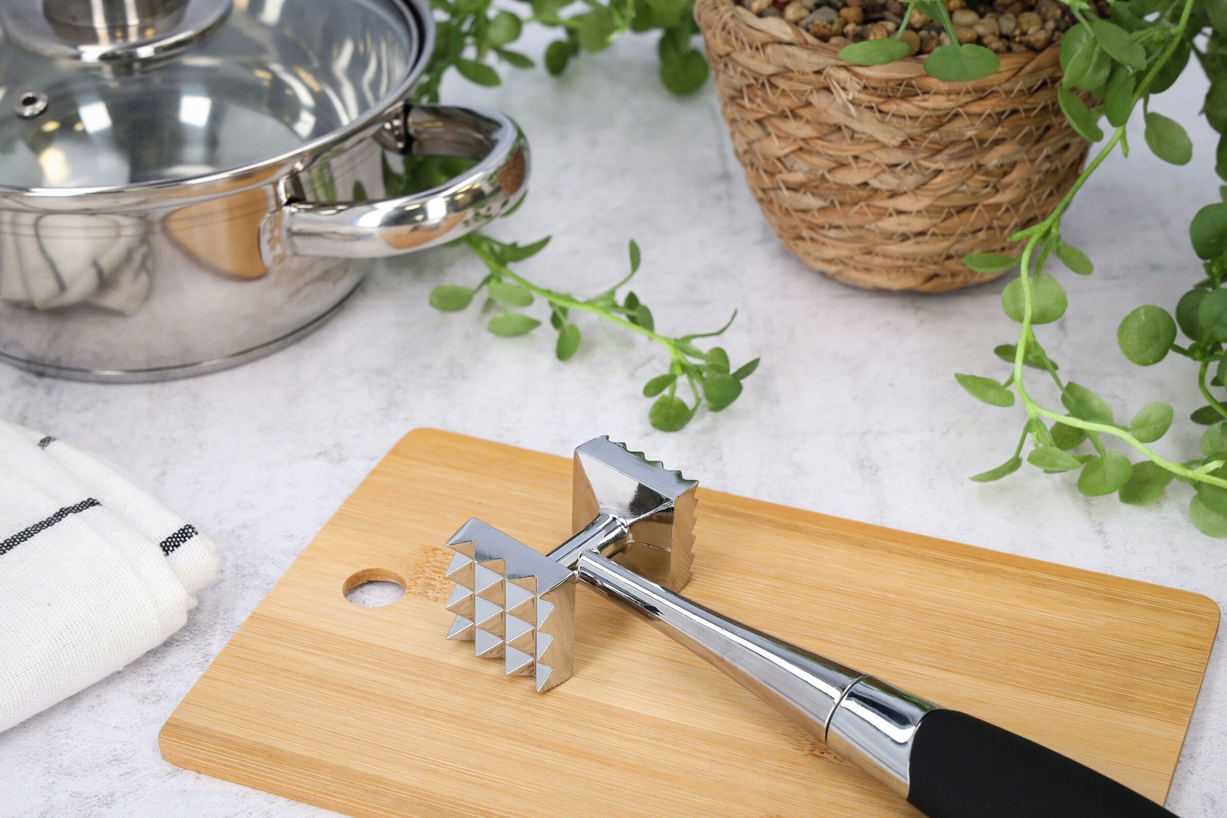 ✅ Надежное качество изготовления - Прочный и долговечный размягчитель мяса. Изготовлен из высококачественной нержавеющей стали, отполированной до блеска.