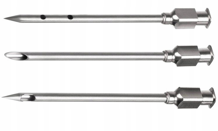 Игла с пятью отверстиями была изготовлена из нержавеющей стали, которая гарантирует безопасное использование в контакте с пищу. Игла будет работать, когда мы хотим равномерно распределить маринад. Благодаря пяти отверстиям маринад будет распространяться на одну сторону.