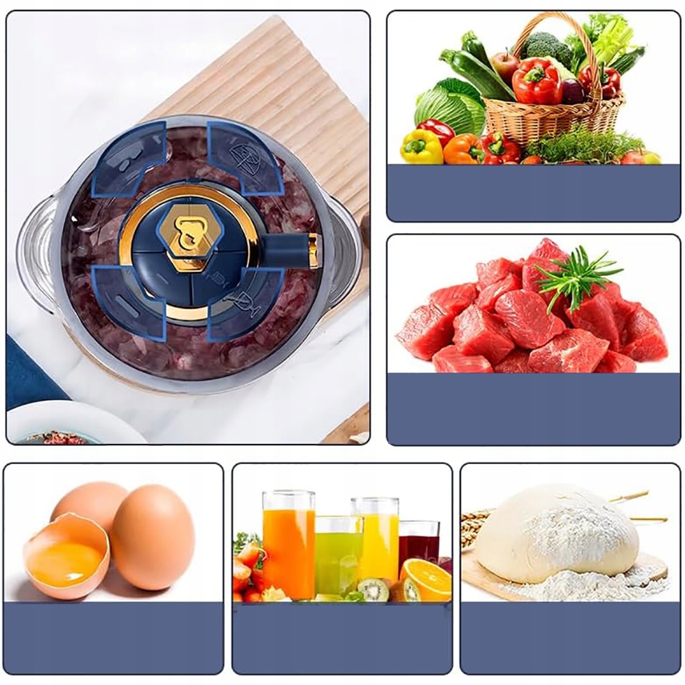 ✅ Электрическая многофункциональная шлифовальная машина: Электрическая шлифовальная шлифовка оснащена 6 лезвиями из нержавеющей стали и 5 -скоростными уровнями. Вы можете легко нарезать и измельчить различные ингредиенты, такие как лук, мясо, ветчина, чеснок, лук, маленькие травы.