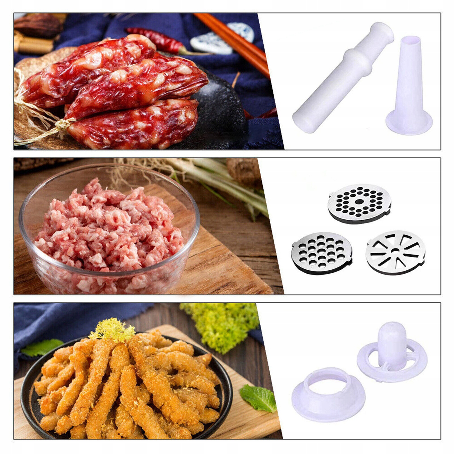 ✅【НАБОР МЯСОРУБКИ, КОТОРЫЙ УЛУЧШИТ ВАШЕ МЕНЮ】Наши мясорубки для домашнего использования оснащены 3-мя отверстиями пластины для измельчения из нержавеющей стали, что позволяет готовить говяжьи котлеты и тефтели разной степени готовности. Насадка для колбасы и куббе в комплекте мясорубки позволяет готовить колбасы и куббе.