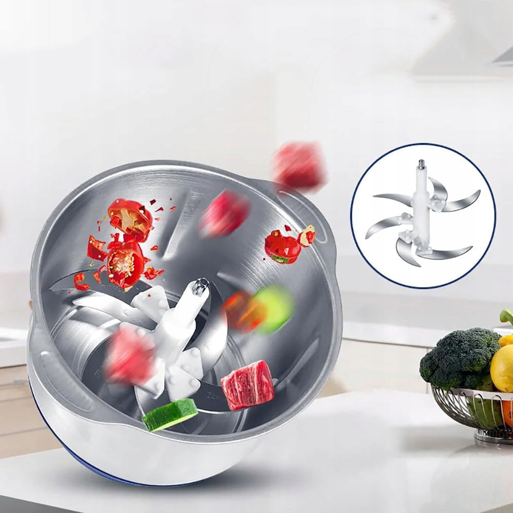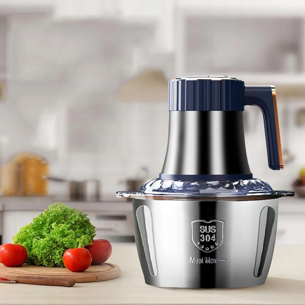 - Сверхбольшая 5-литровая емкость вмещает 2 кг мяса или 3 кг овощей за раз, экономя время и усилие