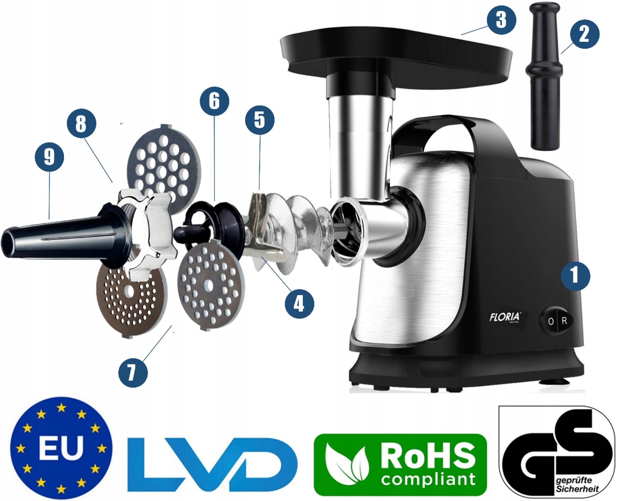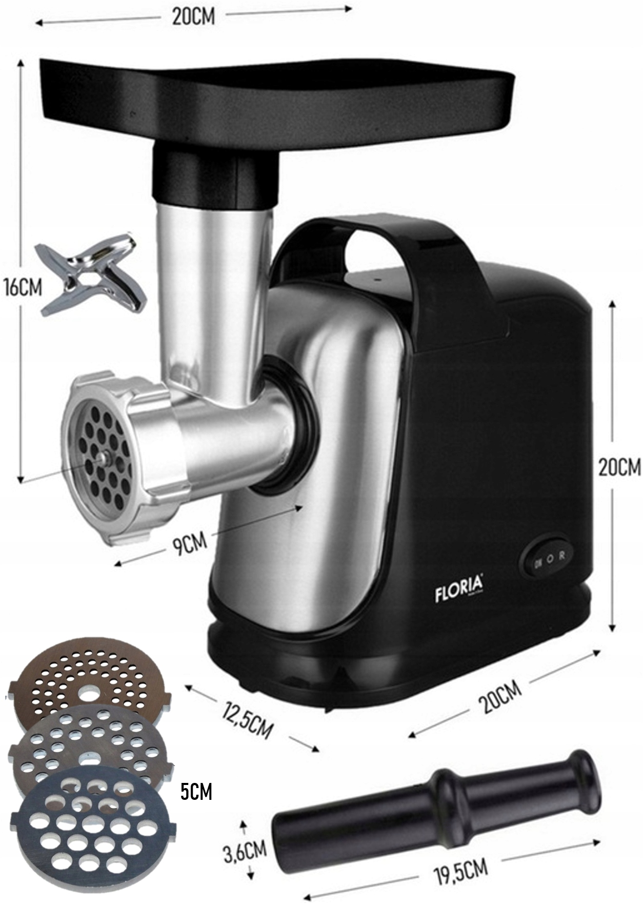 ЭЛЕКТРИЧЕСКАЯ МЯСОРУБКА РЕВЕРСИВНАЯ 3 СИТА ДЛЯ КОЛБАСЫ КЕББЕ 1300ВТ
