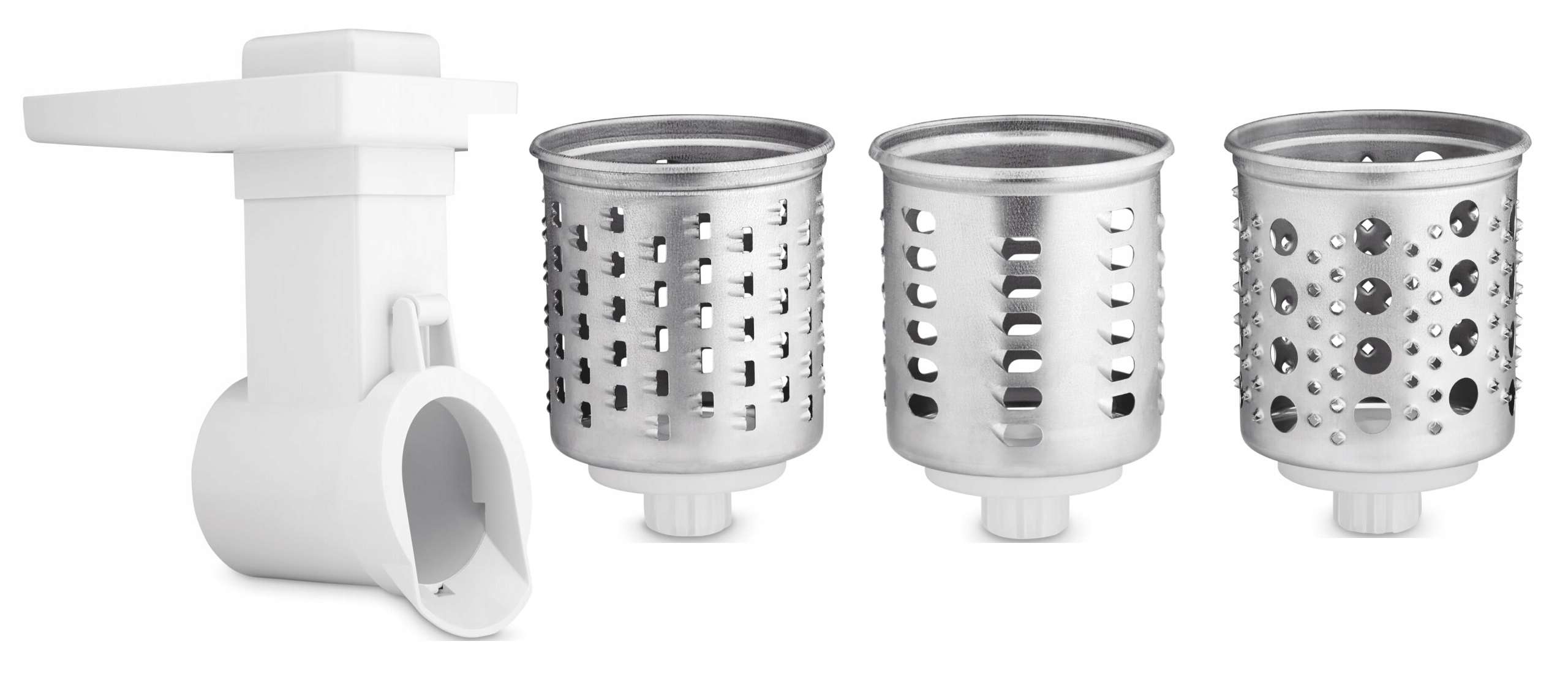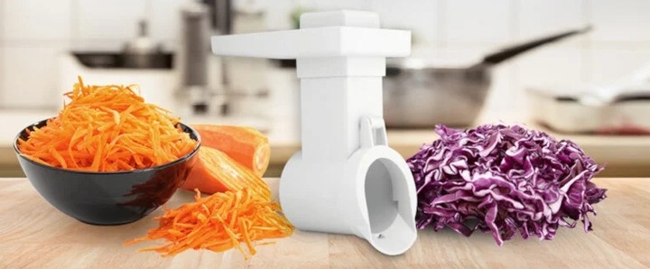 Дай волю своему воображению! В комплект к машинке также входит измельчитель, оснащенный 3-мя видами терок. Стружка, палки или может что-то еще? Вам больше не придется использовать ручную терку,и вы сможете готовить такие блюда, как салаты или оладьи, гораздо быстрее!