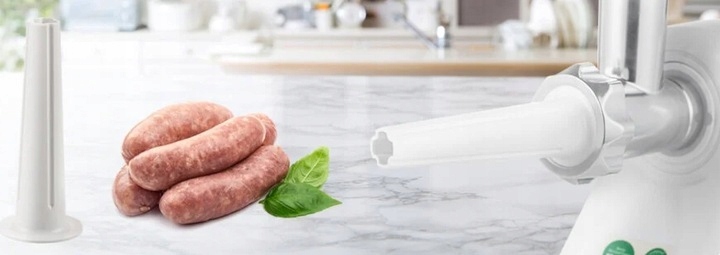 Вкусная домашняя колбаса? Теперь вы можете сделать это быстро и легко. Используйте специальную насадку, благодаря которой мясо примет нужную форму.
