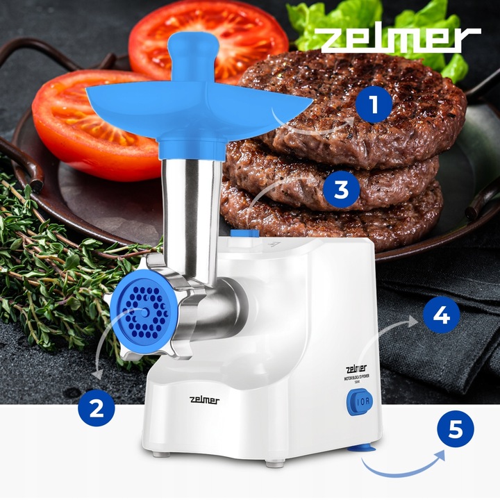 ЭЛЕКТРИЧЕСКАЯ МЯСОРУБКА ZELMER 1000ВТ, КПД 1,3 КГ/МИН