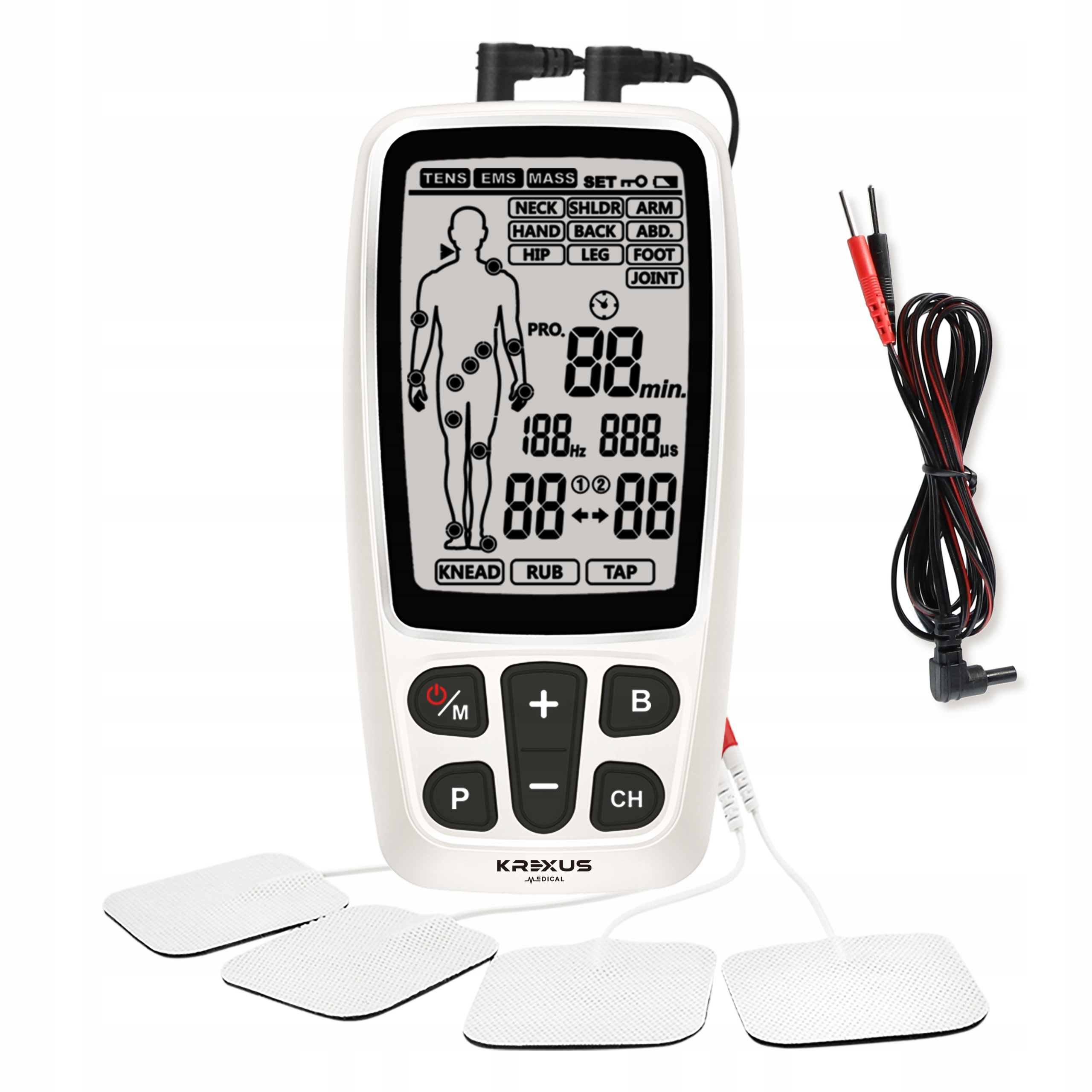 Стимулятор KREXUS — массажный стимулятор с двухканальным выходом TENS и EMS. Он имеет три основные функции - ДЭНС (чрескожная электростимуляция нервов), ЭМС (электронная стимуляция мышц) и МАССАЖ.