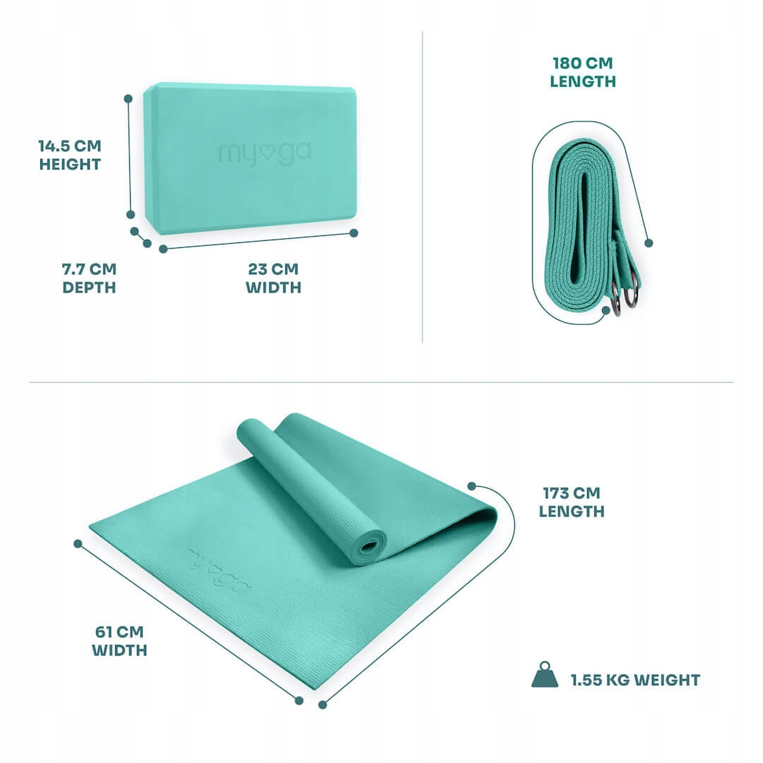 Комплект для йоги myga Yoga Start коврик с ремешком на блоке