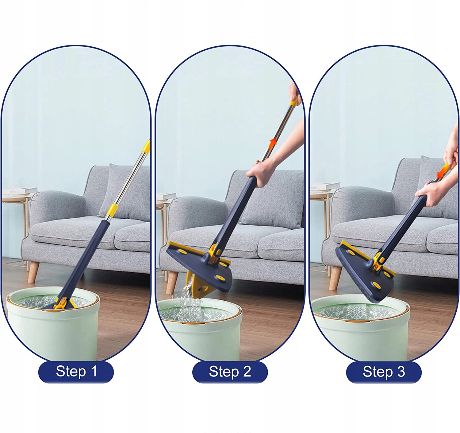 Имитируйте работу портативного устройства руками, работу функции автоматического отжима воды, освободите руки. Просто потяните за ручку, и насадка для швабры автоматически закроется и сожмет трубку. Быстросохнущая треугольная швабра, которая легко удаляет слой пыли.