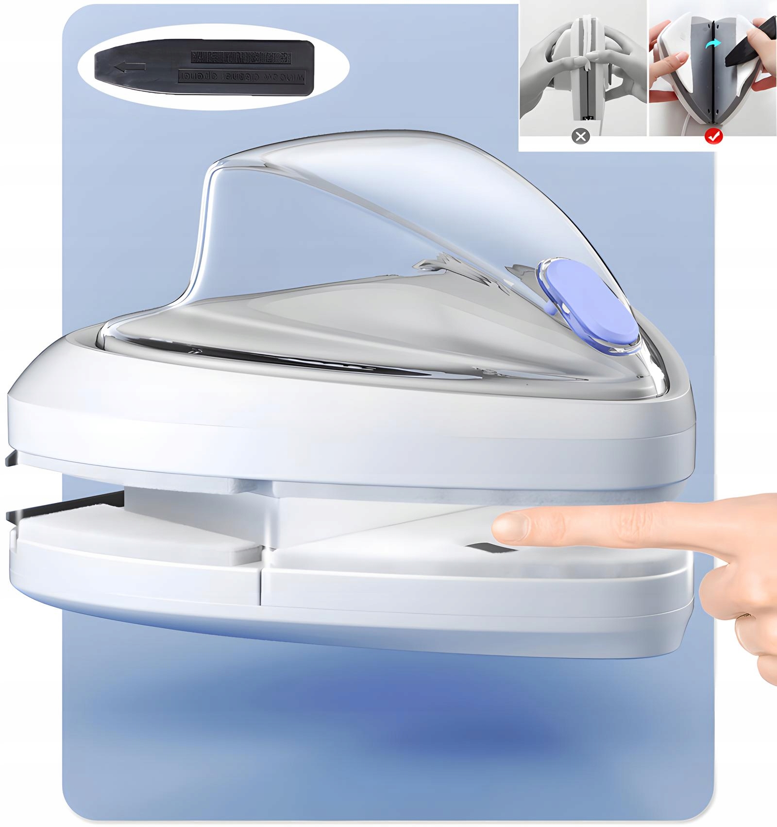 Уникальная треугольная конструкция без деталей: магнитный очиститель для стекол треугольной конструкции можно протирать по всему окну, а треугольное сопротивление трению невелико, что защищает очистку окон и дезинфицирует без тупиков. Встроенный магнитный блок, скребок, чистящая губка, резервуар для воды. Сменная полоска стеклоочистителя, чистящая вата и прочная кнопка.