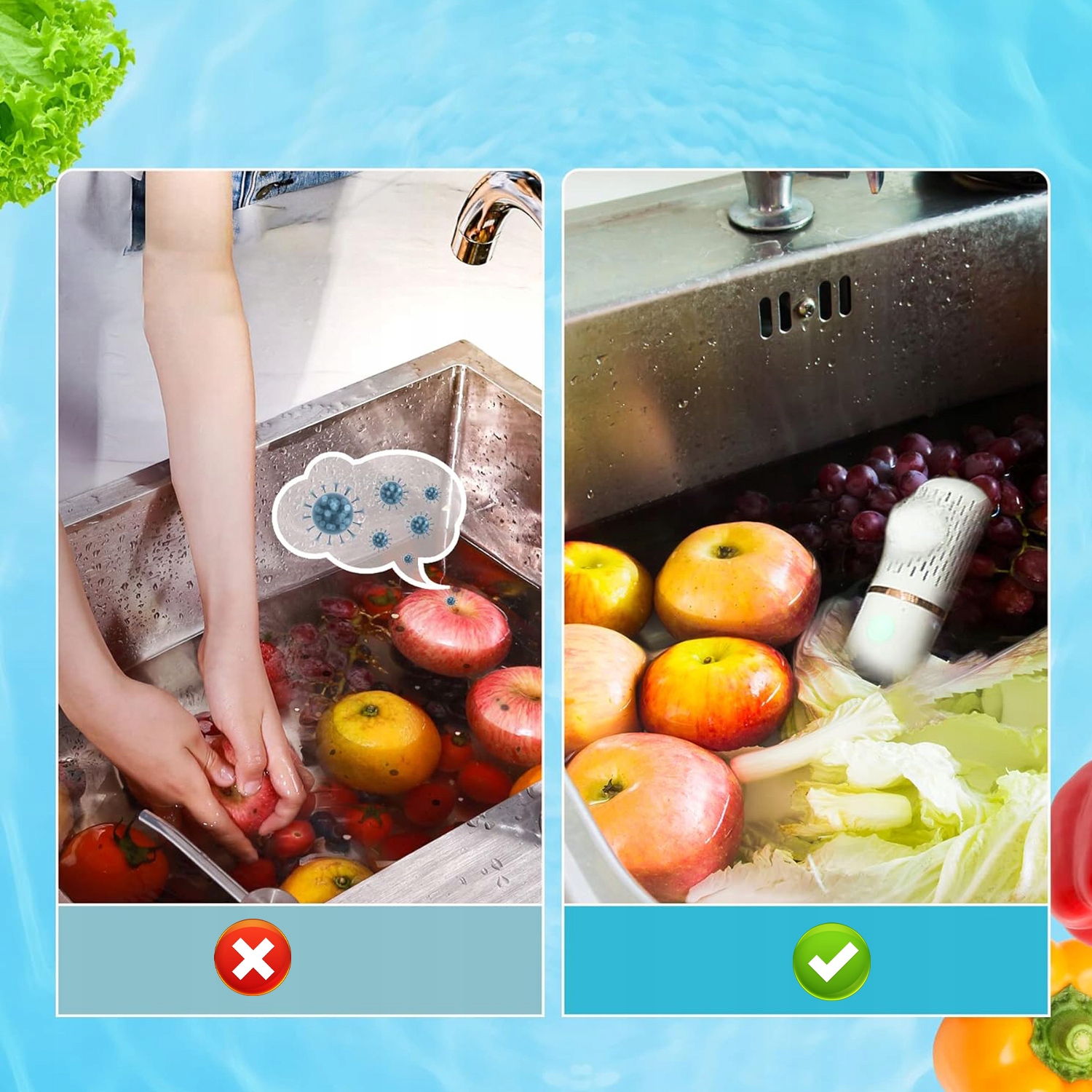 MYJKA ŚRODEK DO CZYSZCZENIA ŻYWNOŚCI OWOCÓW I WARZYW BEZPRZEWODOWY USB