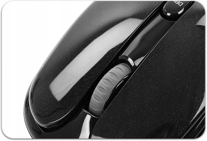 Колесо прокрутки покрыто серой резиной с видимыми бороздками, благодаря которым прокрутка документов доставляет удовольствие. Боковые стенки покрыты изящным рисунком с выступами, что обеспечивает лучший захват мыши.