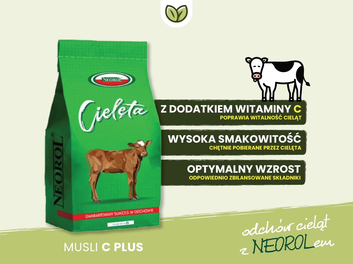 МУСЛИ С ПЛЮС - комбикормовая смесь, предназначенная для выращивания телят с 5-го дня по 6-ю неделю жизни с добавлением витамина С.