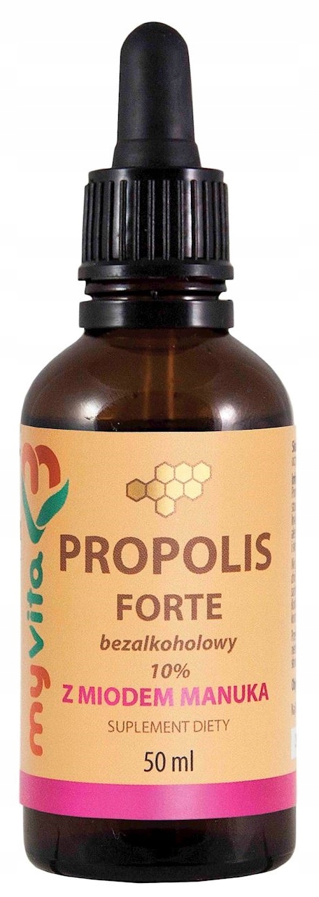 propolis forte из Myvita -это приложение без добавления алкоголя, содержимое 12%. Пчела, благодаря наличию многих активных веществ, использовалась в антибактериальных препаратах для внешнего и внутреннего использования.